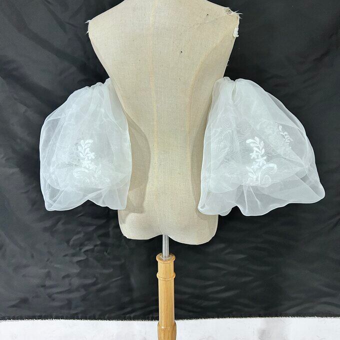 送料無料!オフホワイト ふわふわ袖 取り外し袖 繊細レース 結婚式/披露宴/二次会