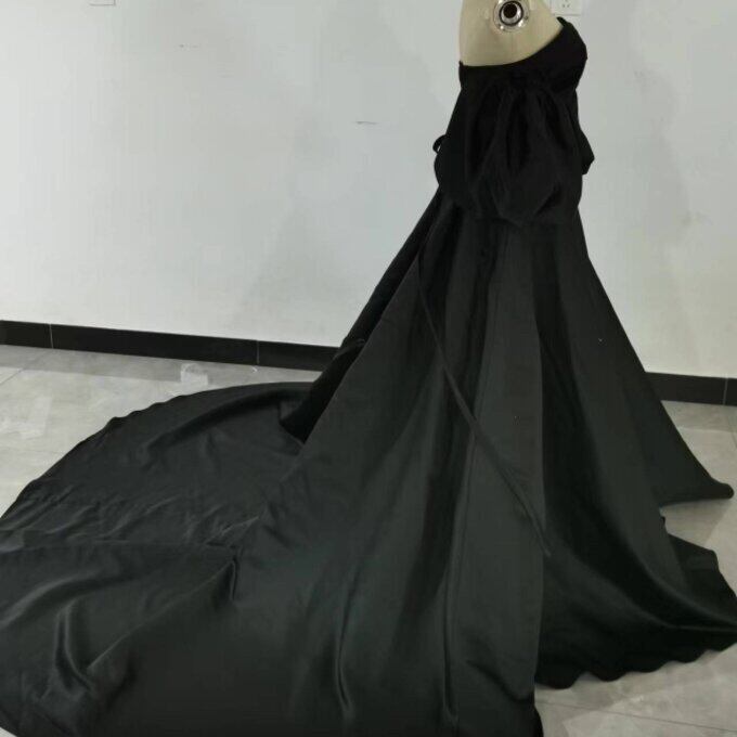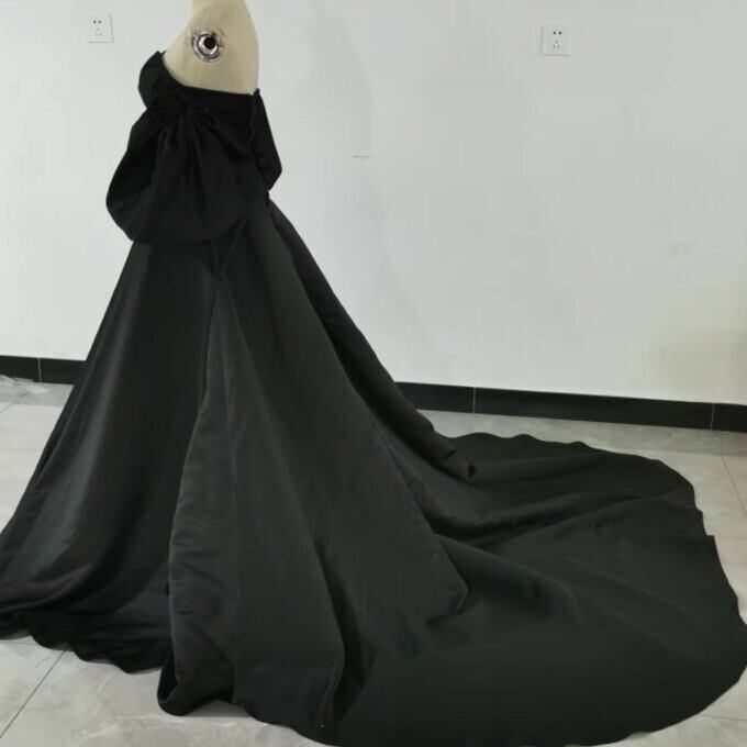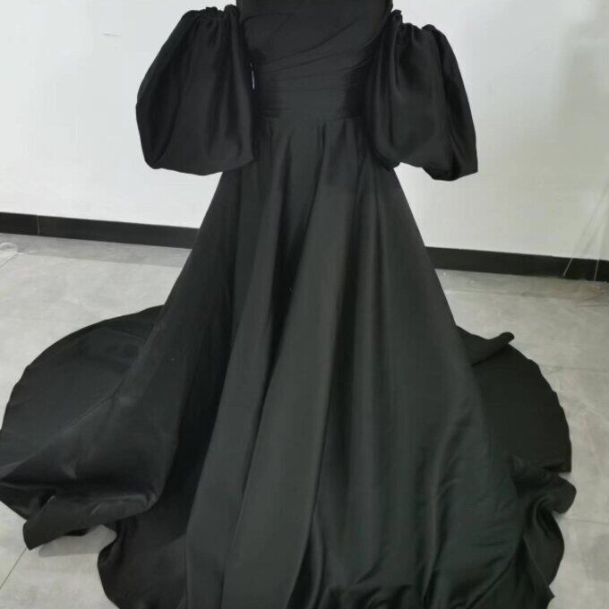 即納!パーティードレス 黑 パフスリーブ 取り外し袖 ベアトップ お呼ばれ/二次会 ト