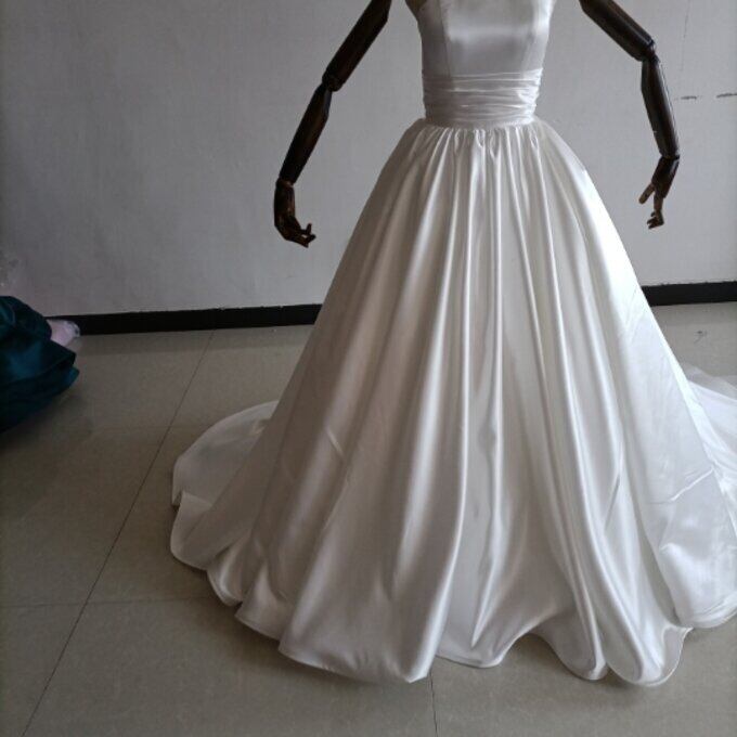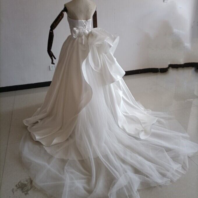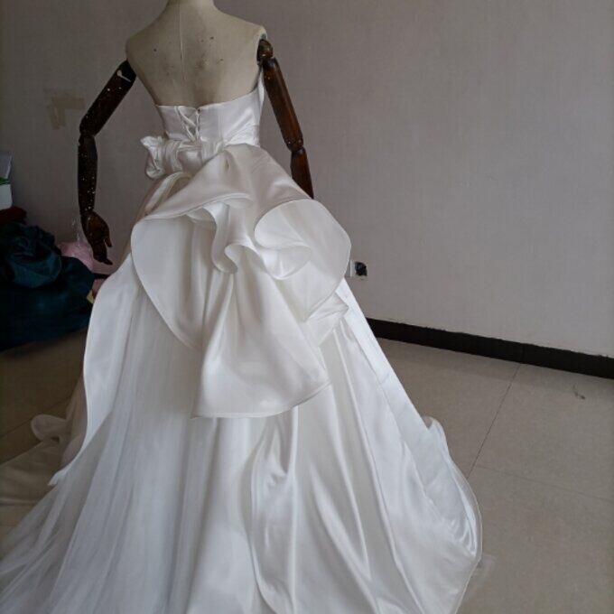 即納!豪華!オフホワイト ドレス Aライン ベアトップ サッシュベルト 華やかなトレーン 結婚式/披露宴/二次会