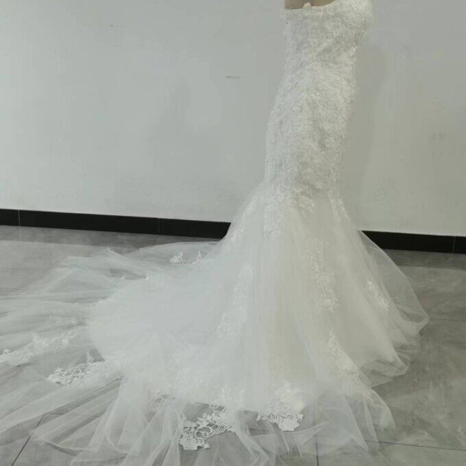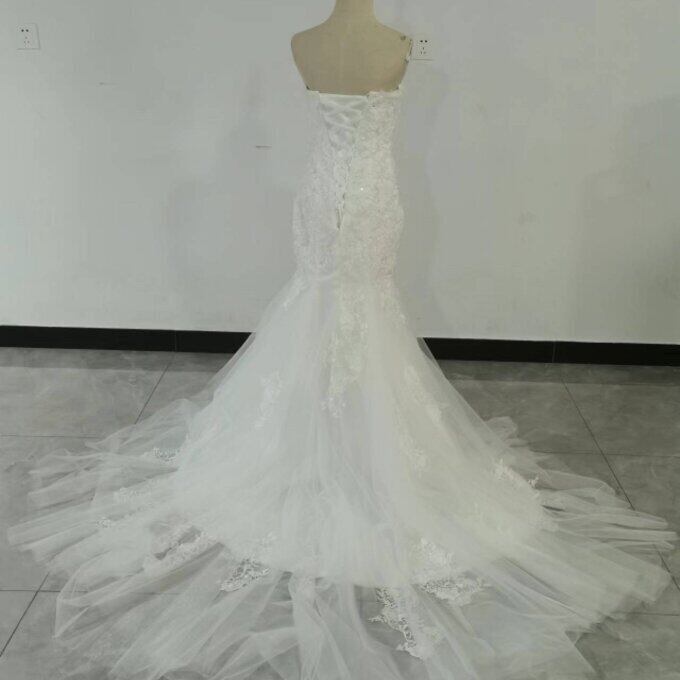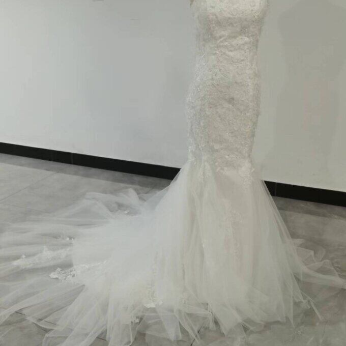 美品!フランス風ウエディングドレス オフホワイト ベアトップ マーメイドライン 結婚式 /披露宴/挙式