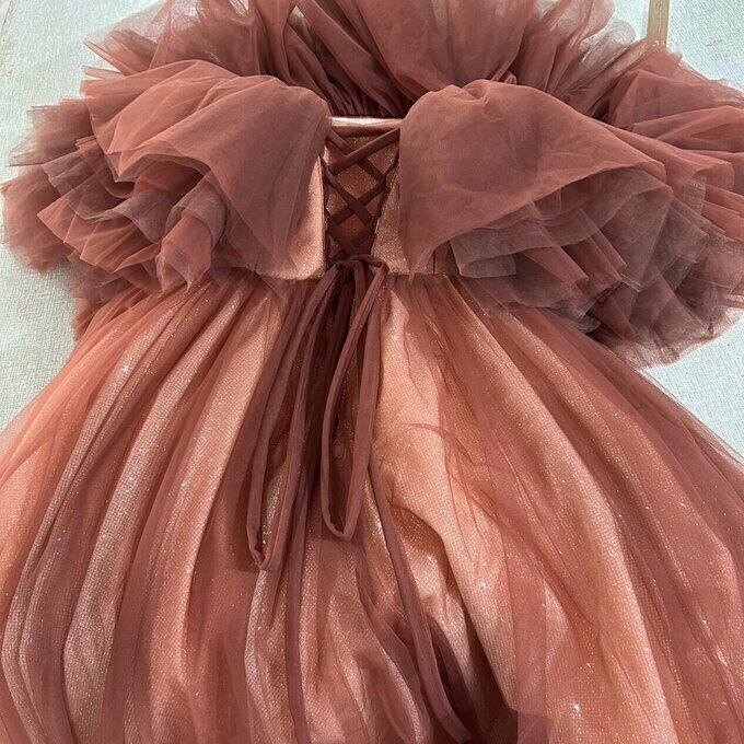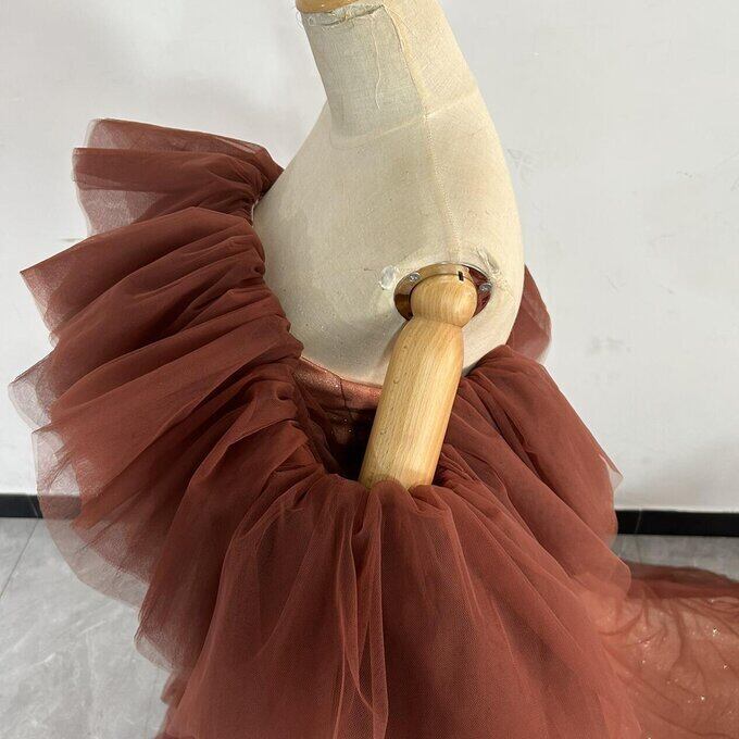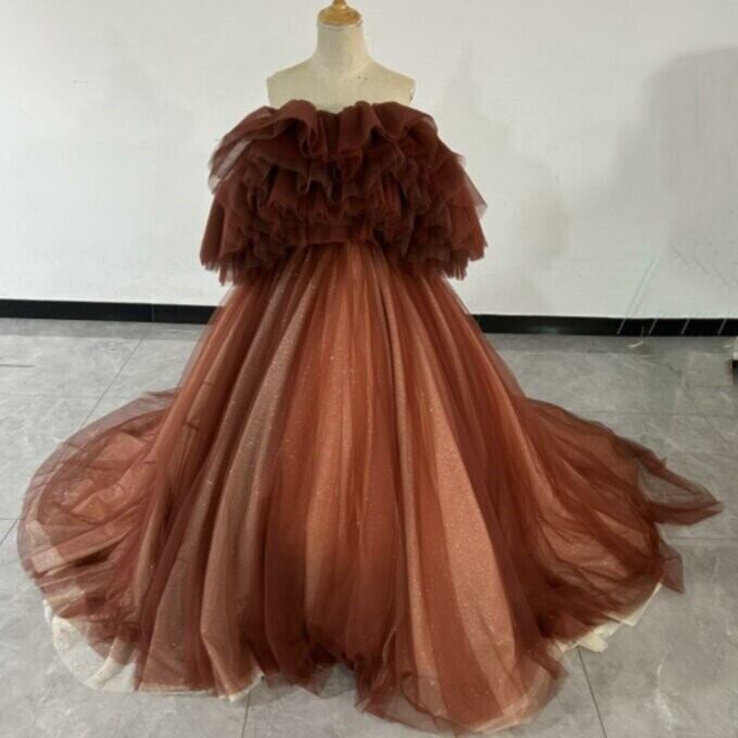 豪華!テラコッタ色 カラードレス フレアスカート ベアトップ 取り外しオフショルダー 花嫁/二次会
