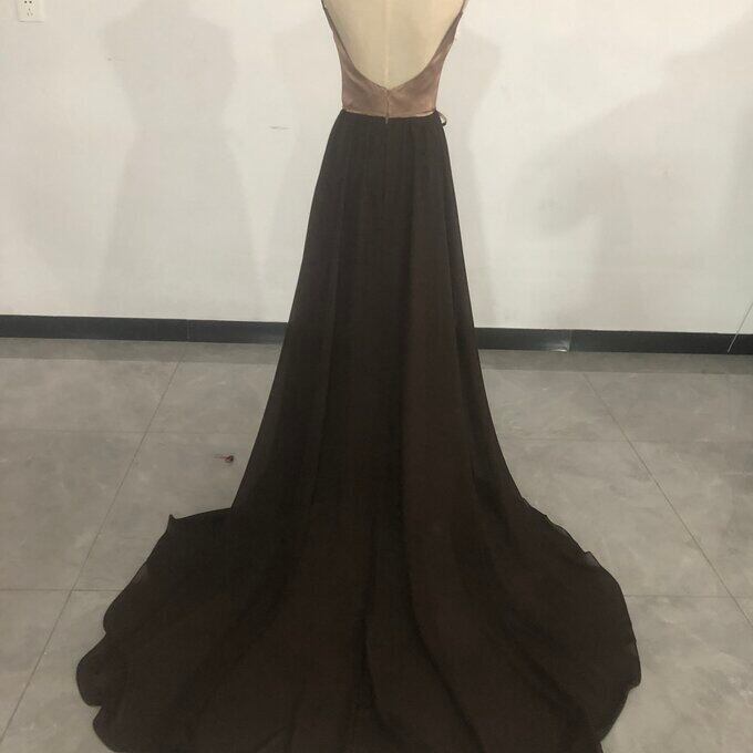 即納!エレガント ブラウンカラードレス 前撮りドレス 背中見せ 二次会 結婚式