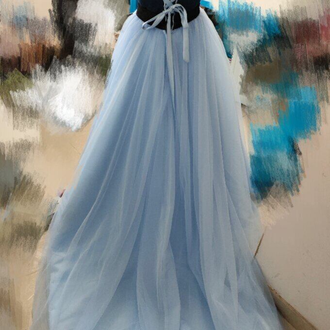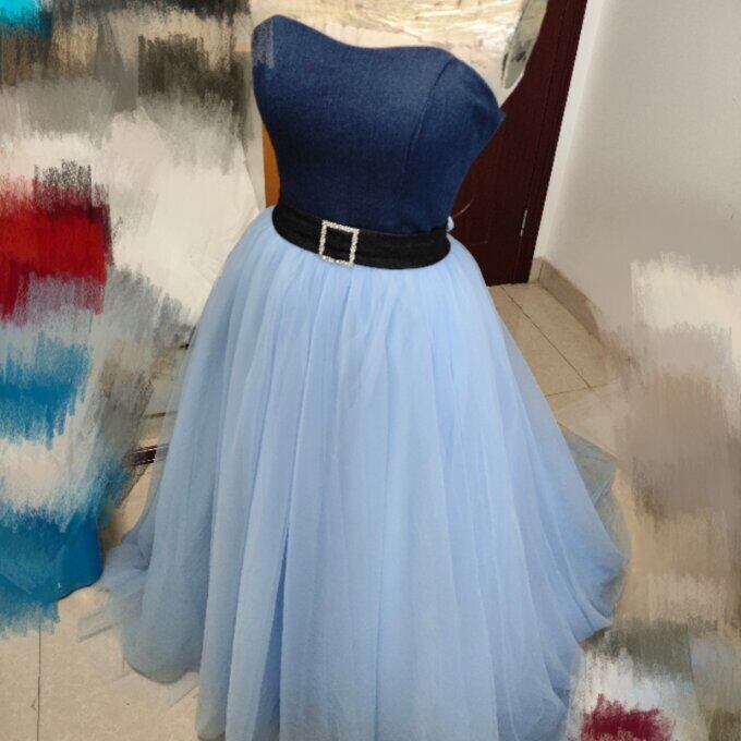 エレガント ネイビー デニムドレス ベアトップ チュールスカート 披露宴/拳式