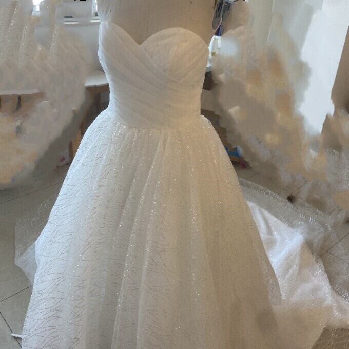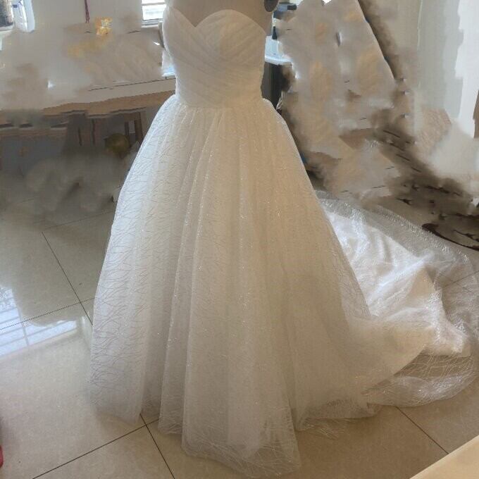 高品質!オフホワイト ドレス Aライン ベアトップ 背中見せ ノースリーブ 華やかなトレーン結婚式/披露宴/二次会