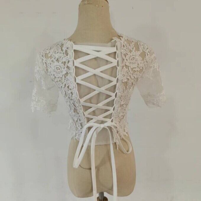 エレガント ウエディングドレス ボレロ 3D立体レース刺繍 編み上げ 花嫁 可憐