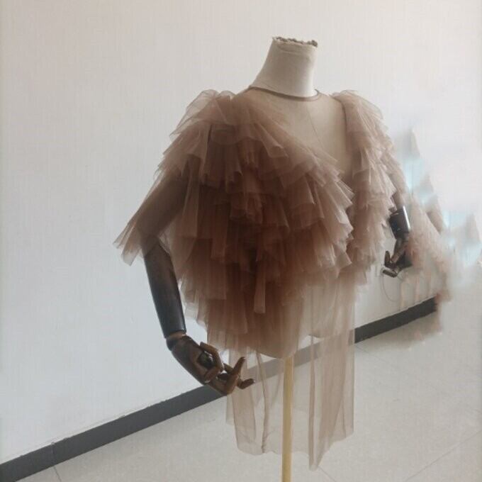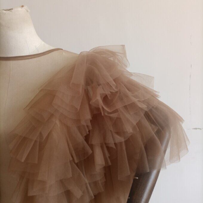 豪華!コーヒーの色 ソフトチュール トップス 結婚式/披露宴