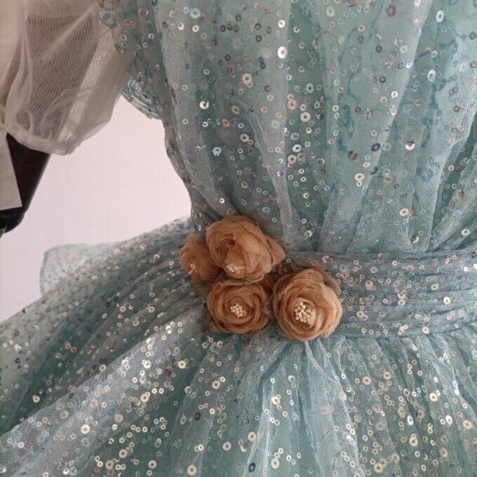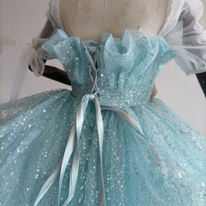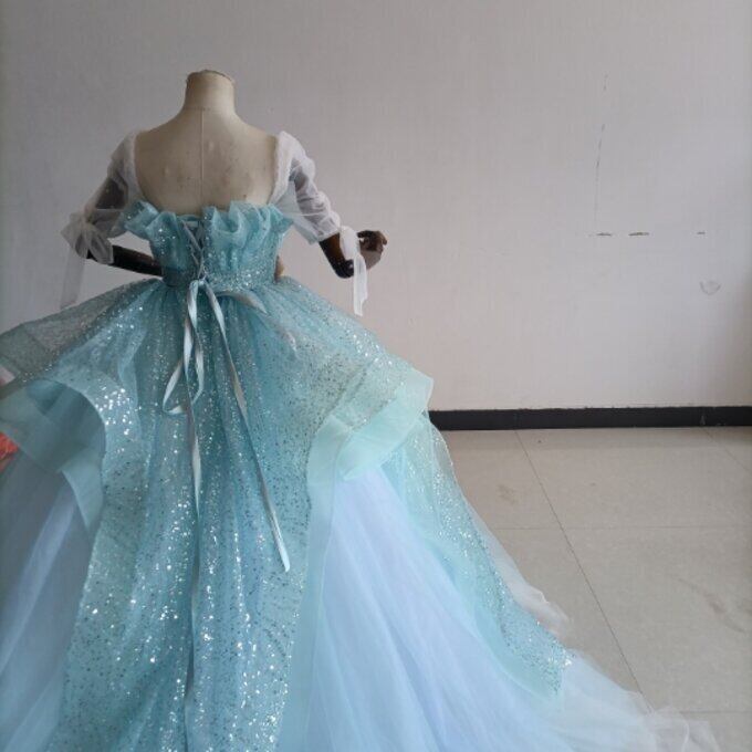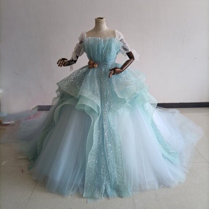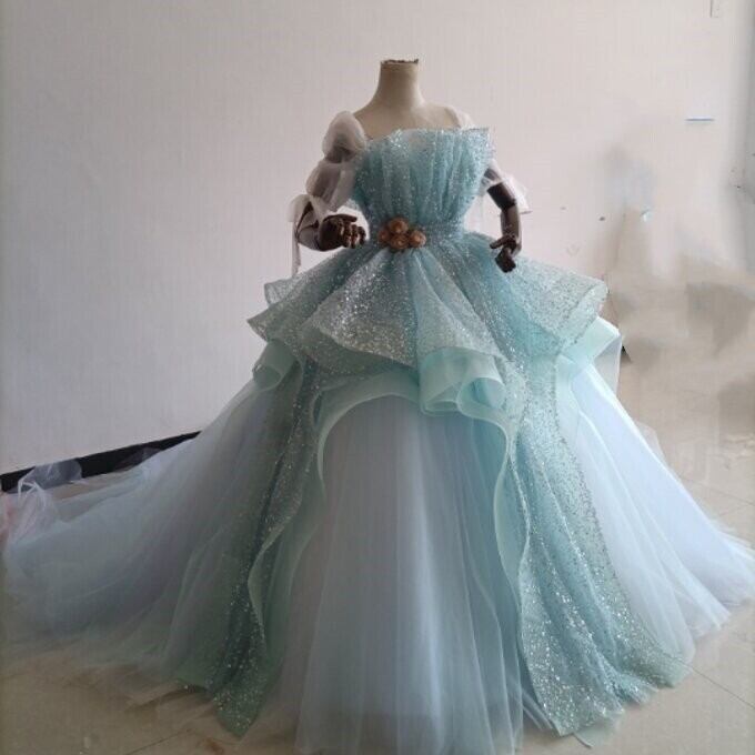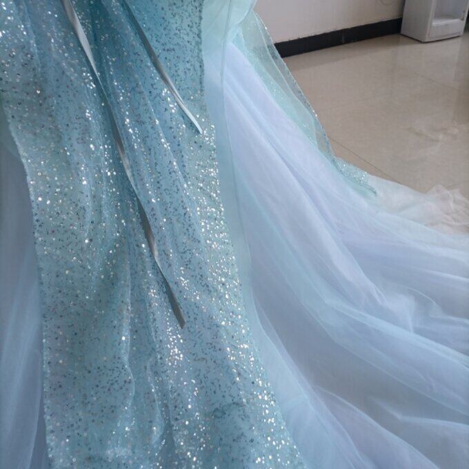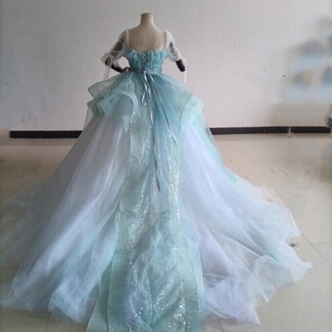 憧れのドレス ブルー カラードレス キラキラグリッターチュール 華やかなトレーン 結婚式/披露宴/二次会