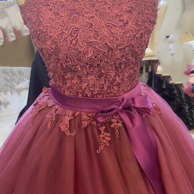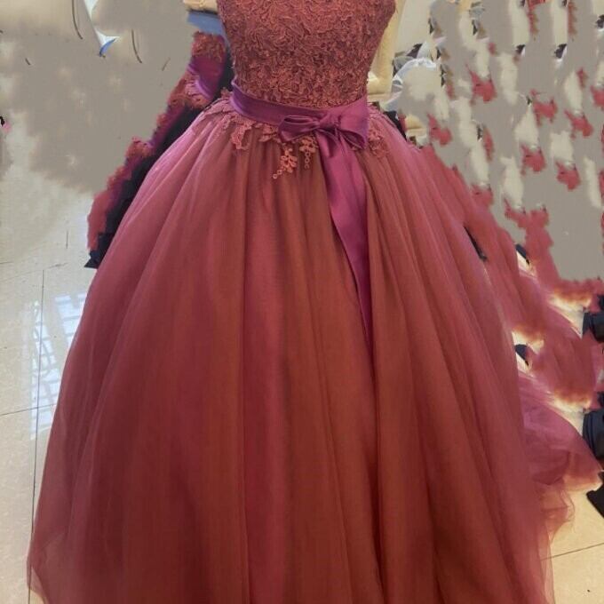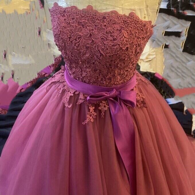 即納!カラードレス ワインレッド ソフトチュール ベアトップ 挙式 前撮り