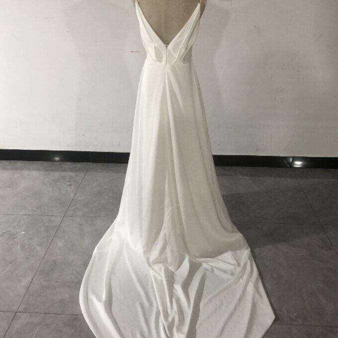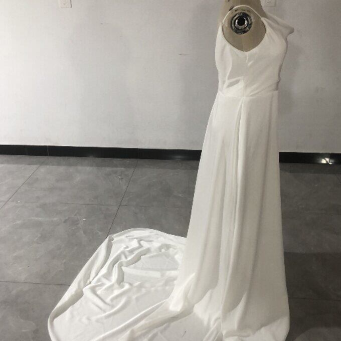 送料無料!エレガント オフホワイト ドレス ワンピース トレーン 背中見せ 二次会/拳式
