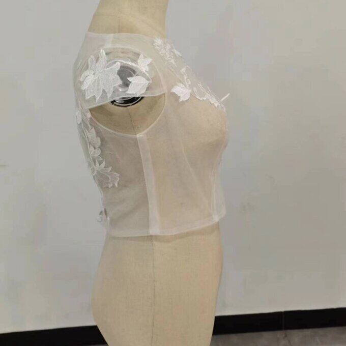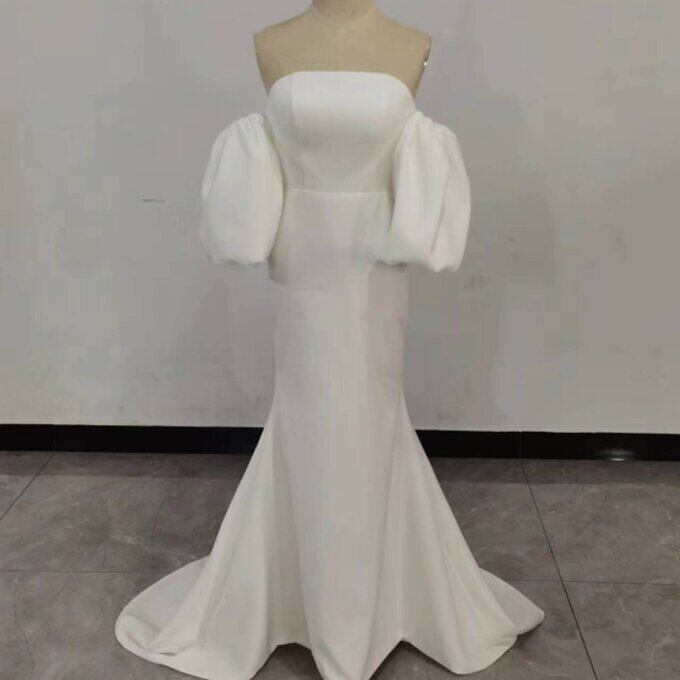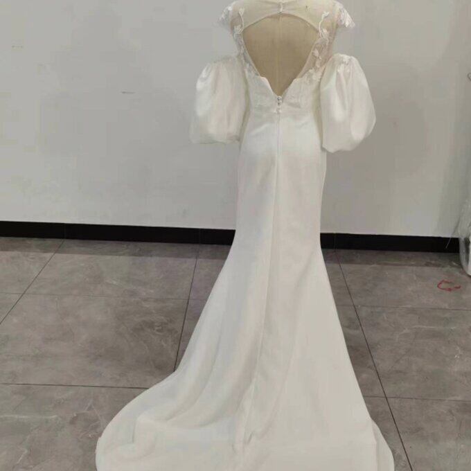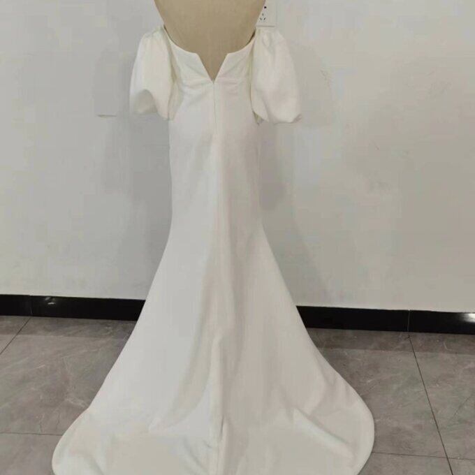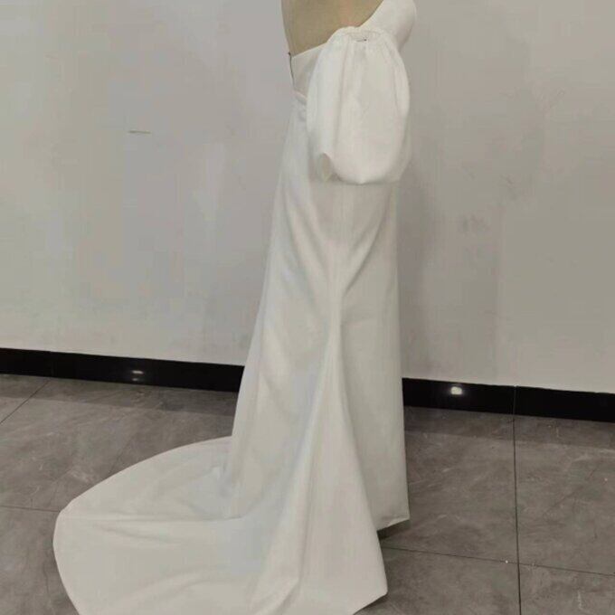 上品!オフホワイト ドレス ボレロ 背中見せ トレーン 二次会/拳式