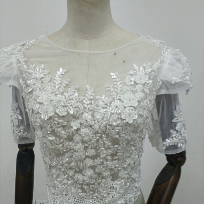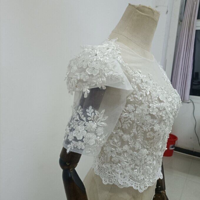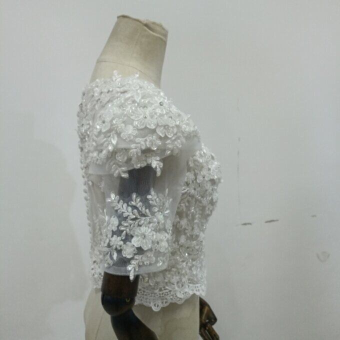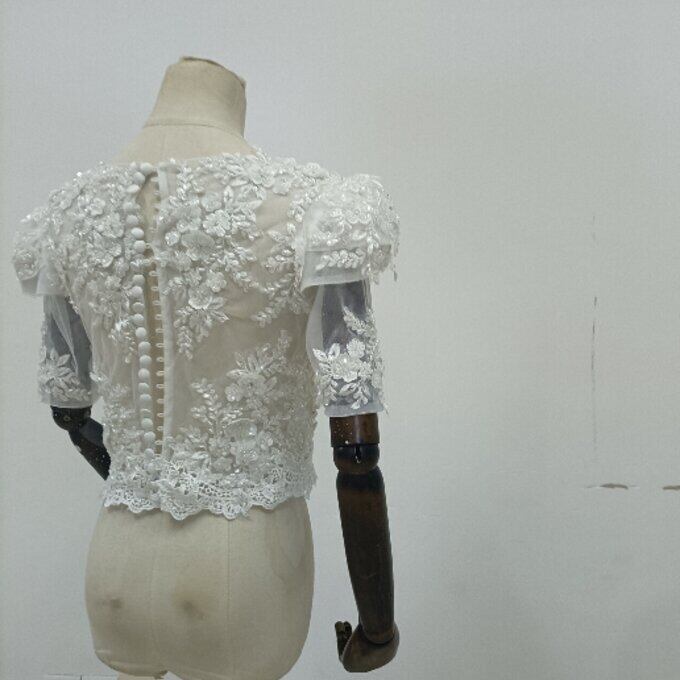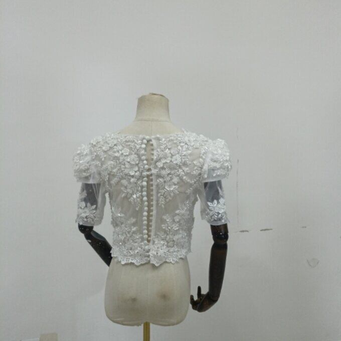 即納!エレガント オフホワイト ボレロ 花柄のモチーフ刺繍が美しく 結婚式/二次会