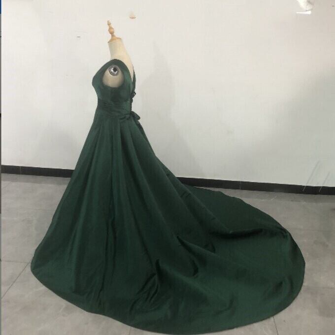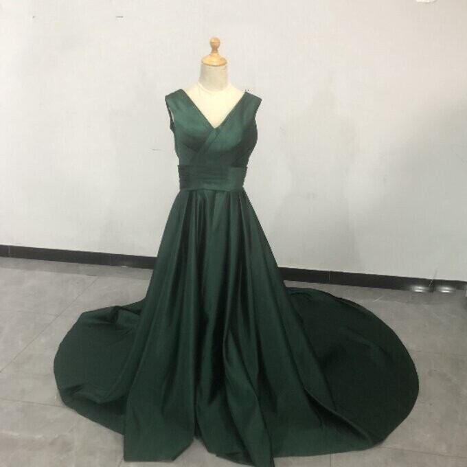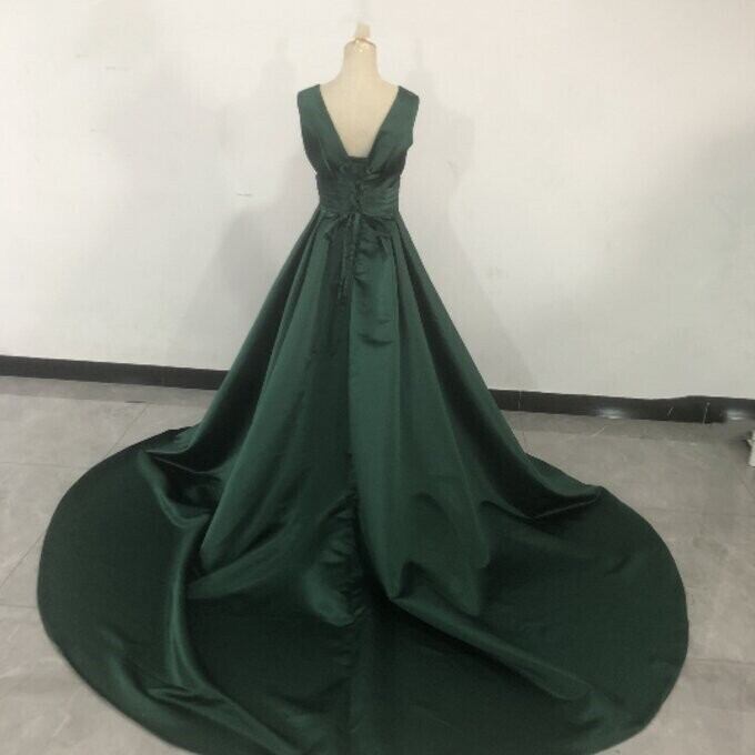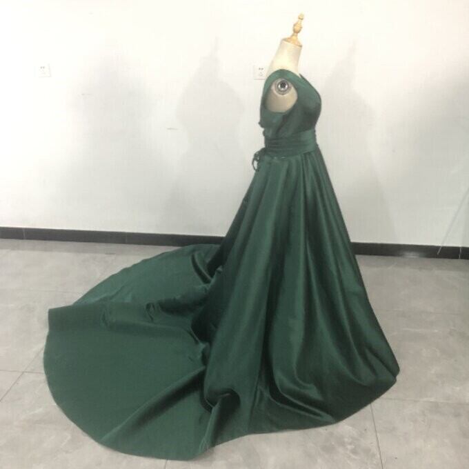 即納!高品質!グリーン いサテンロングワンピース クラシカル エレガント トレーン 二次会ドレス