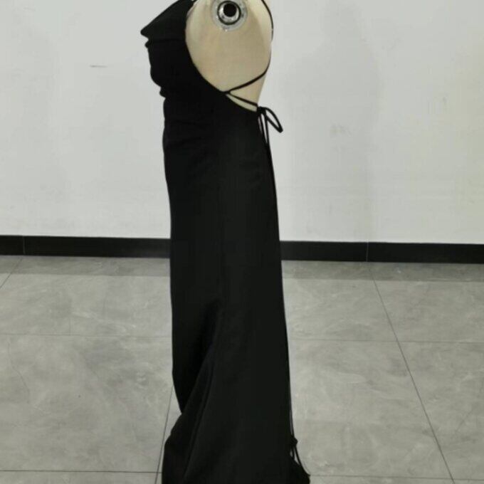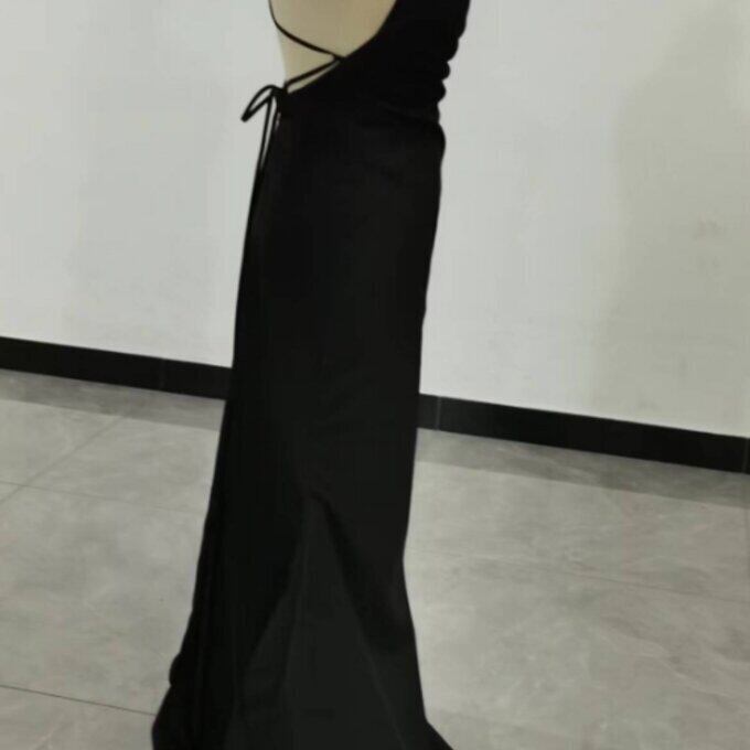 即納!美品!パーティードレス 黒 キャミソール 背中見せ スレンダーライン エレガント クラシカル シアーな美しさ