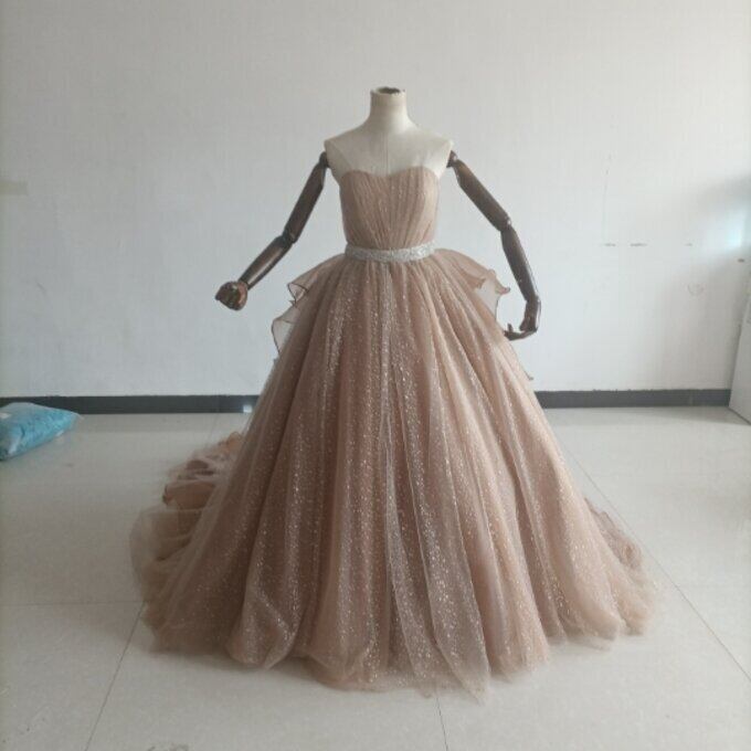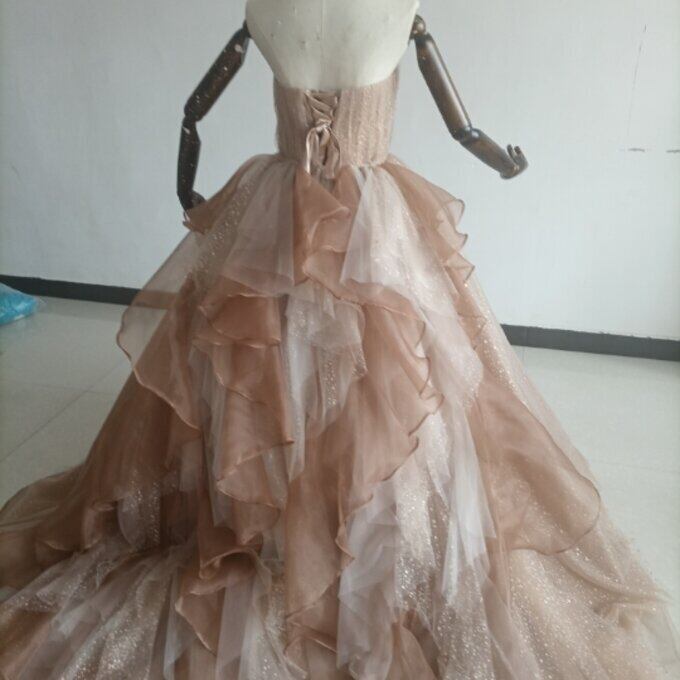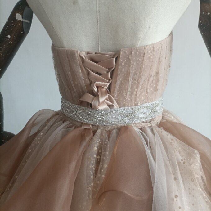 即納!カラードレス ラッフルフリル キラキラチュール ベアトップ 2次会
