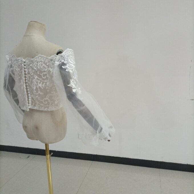 送料無料!ボレロ エレガント 花嫁 くるみボタン シースルー袖 結婚式/披露宴
