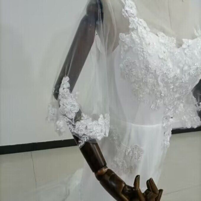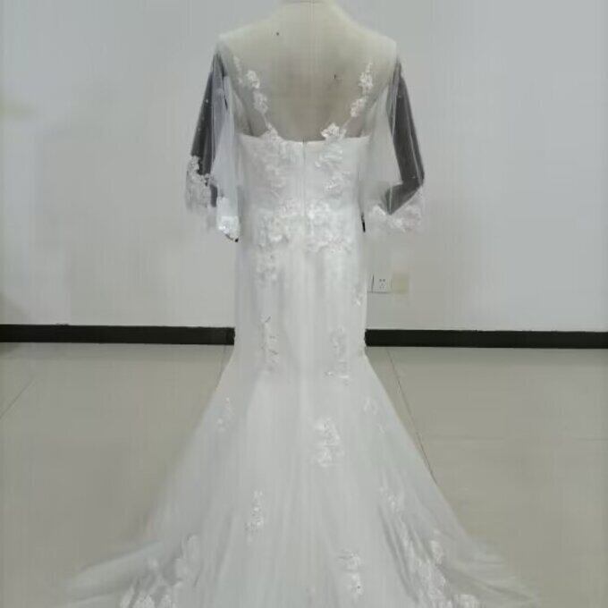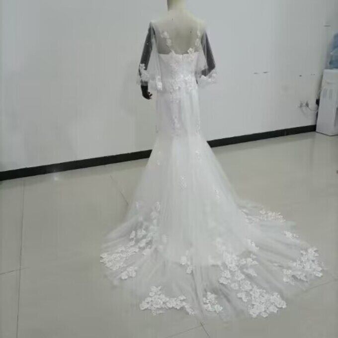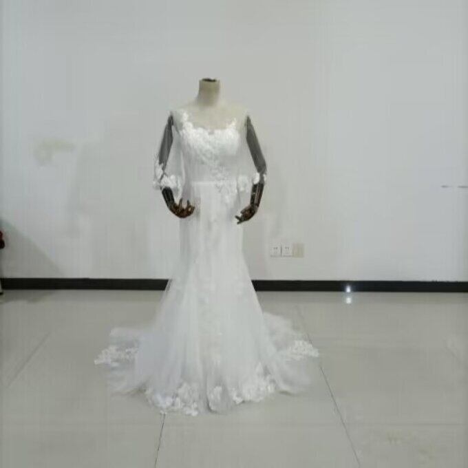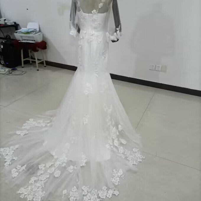 即納!上品! ウェディングドレス 袖あり 着痩せ マーメイドドレス 結婚式 挙式 前撮り 2次会 ハネムーン