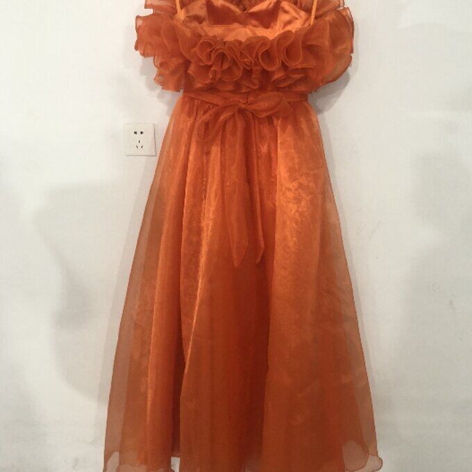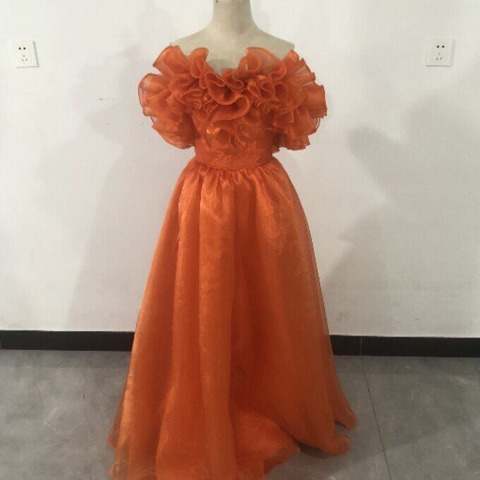 送料無料!高品質!オレンジ オフショル ハンドビーディング 前撮り 2次会/挙式