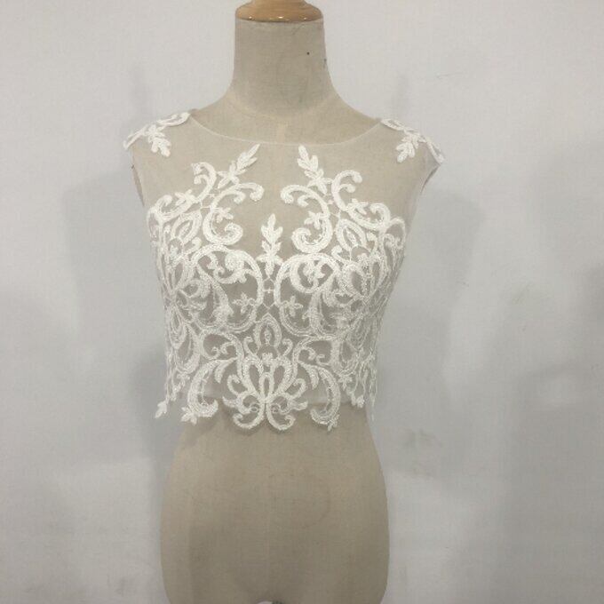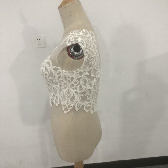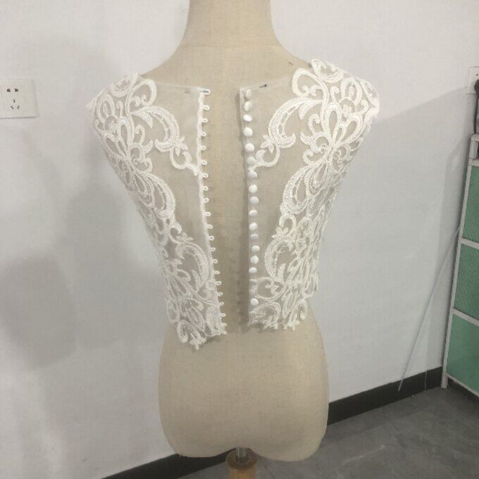即納!ウエディングドレス用ボレロ トップスのみ ノースリーブ  くるみボタン 繊細レース オーダー可能