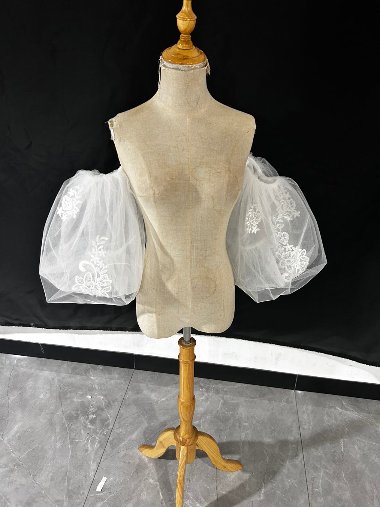 送料無料!大人気上昇 ソフトチュール 美しい花レース 取り外し袖 ふわふわオーガンジー ショルダーの付け袖 パフスリーブ オーダー可能,