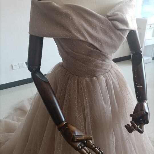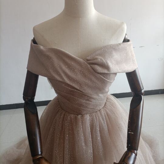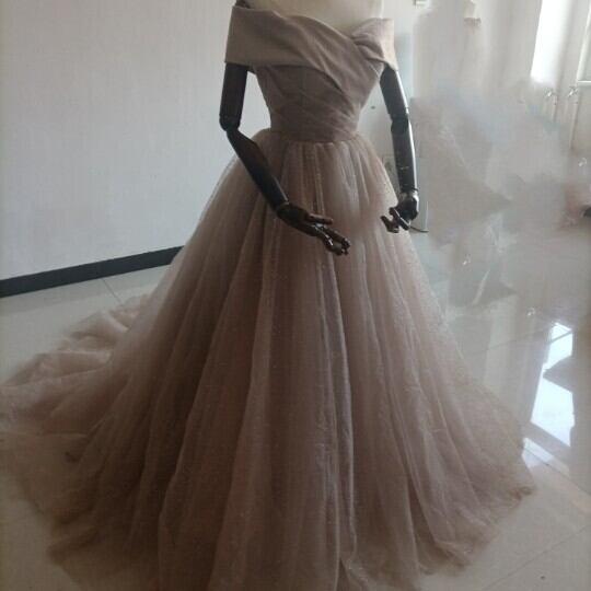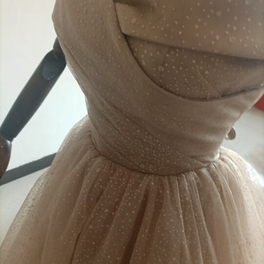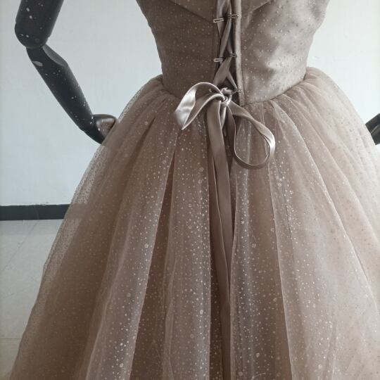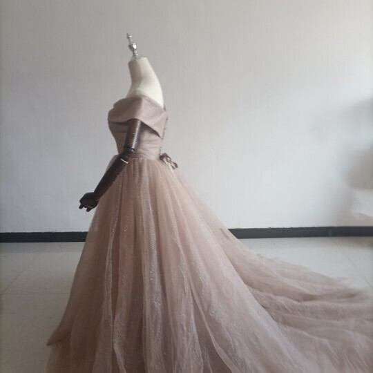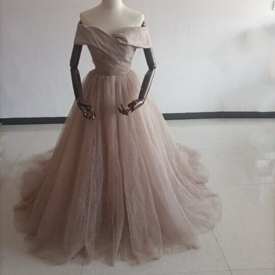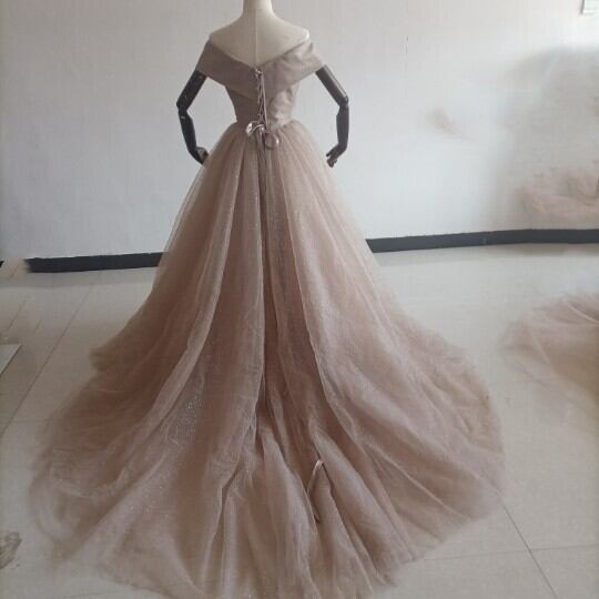 シャンパン色 カラードレス 輝きな光彩を放つ ビジュー キラキラチュール プリンセスライン