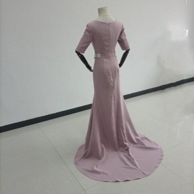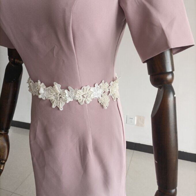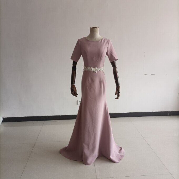 即納!高品質! ピンク ドレス 短袖 クルーネック ファスナー ミニトレーン 披露宴/拳式