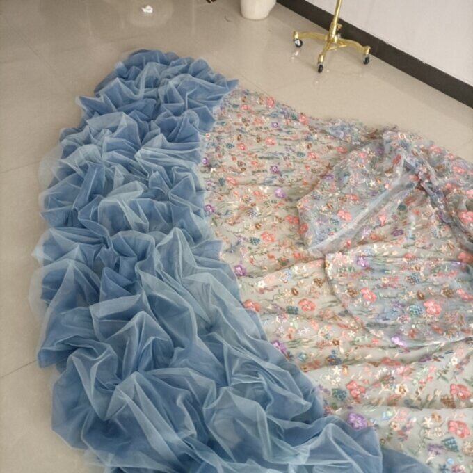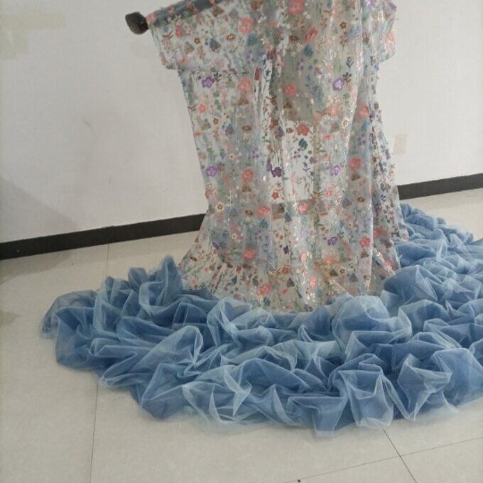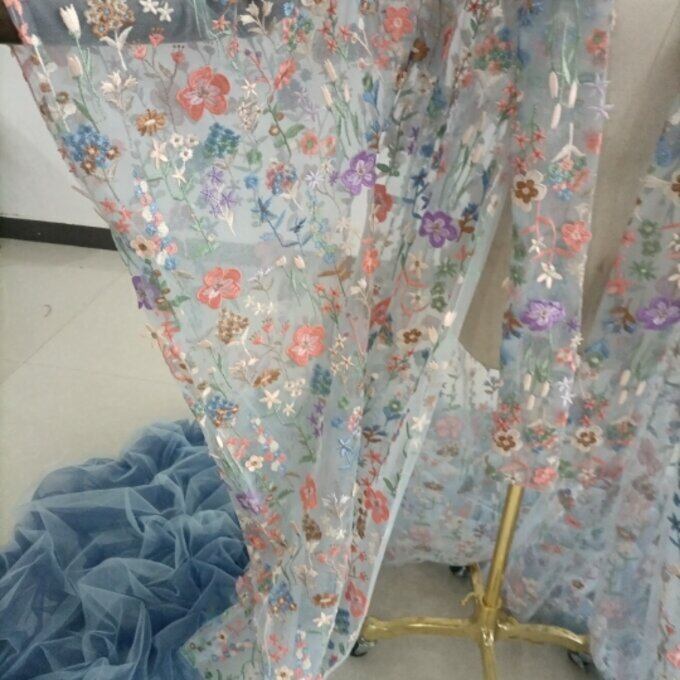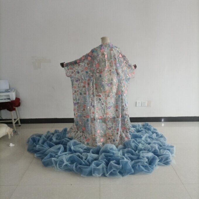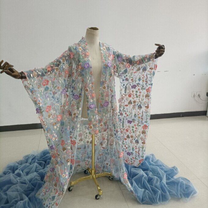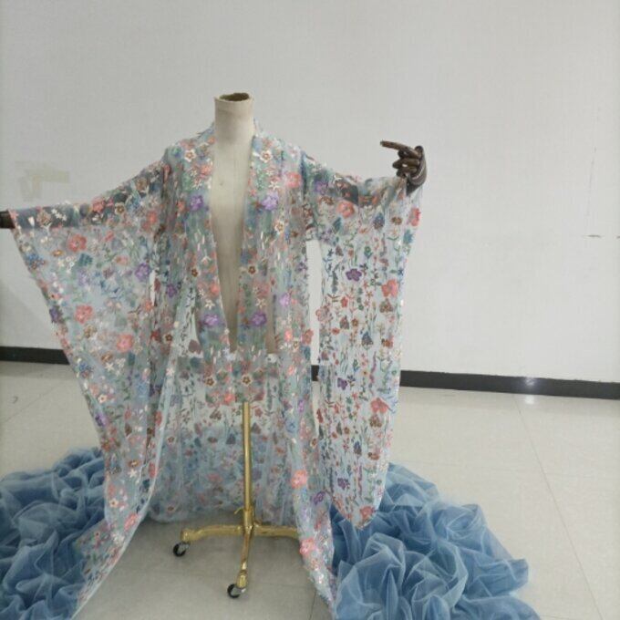 送料無料! ブルー オーガンジー打掛 着物 オーバードレス レース羽織 お色直し 精緻な刺繍