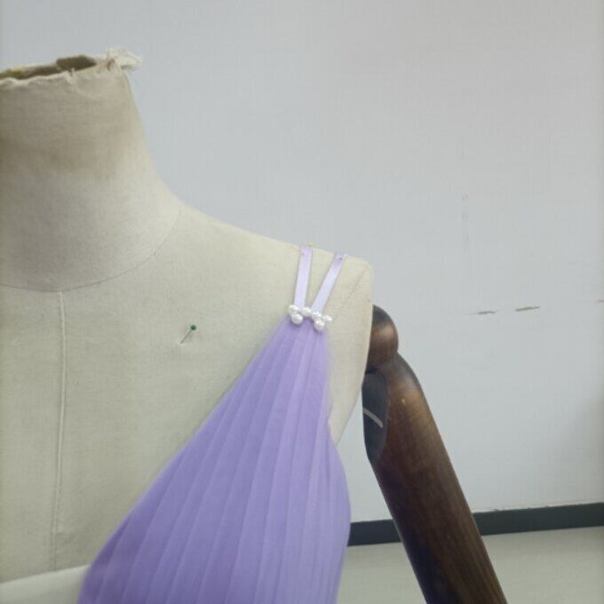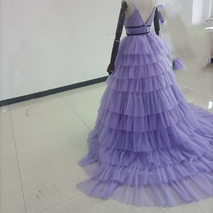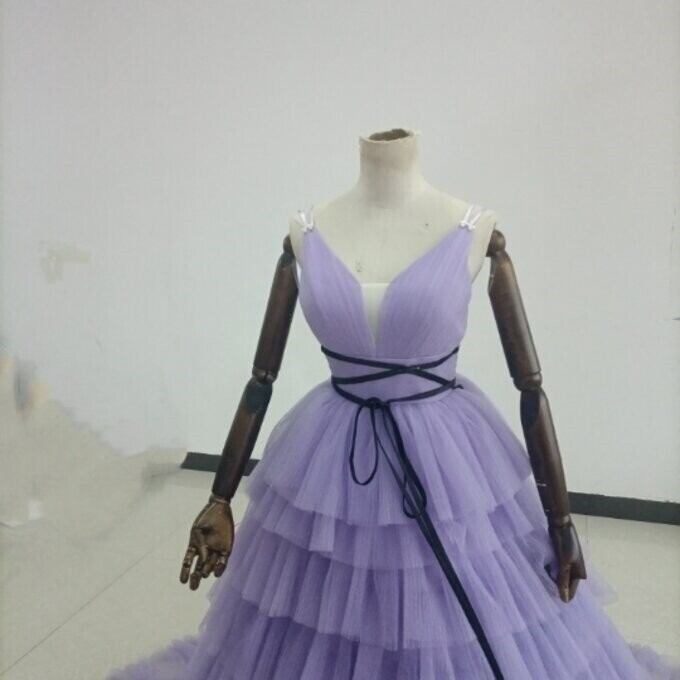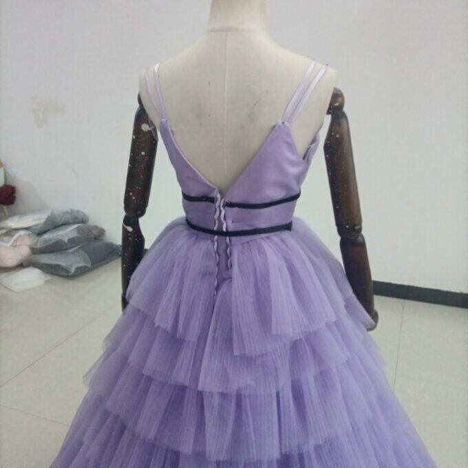 即納!華やか パープル スパンカラードレス Vネックドレス 柔らかく重ねたチュールスカ 花嫁/披露宴/二次会