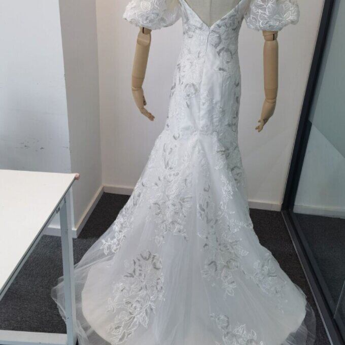 即納!マーメイドウェディングドレス 上品花レース パフスリーブ ロングトレーン 前撮り/花嫁/結婚式