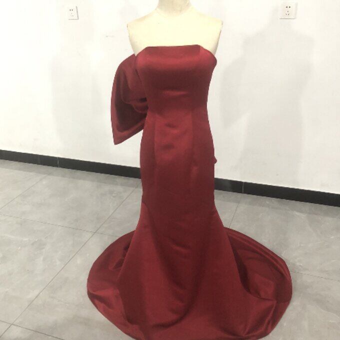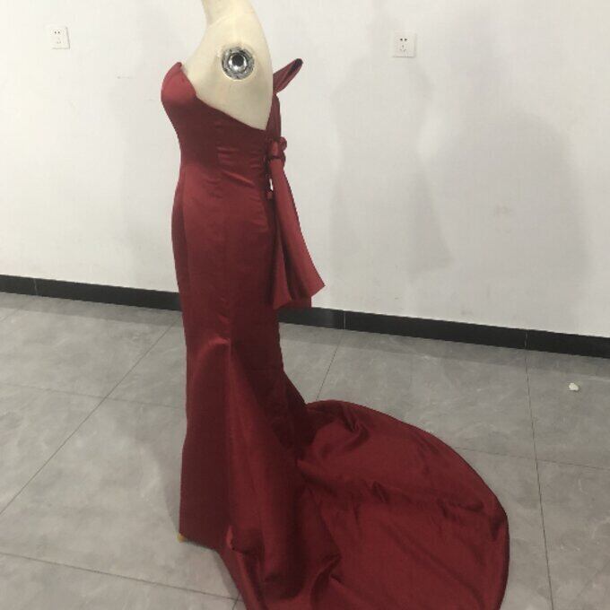 送料無料!上品!ワインレッド カラードレス ベアトップ ふっくら柔らかなバックリボン 花嫁/披露宴