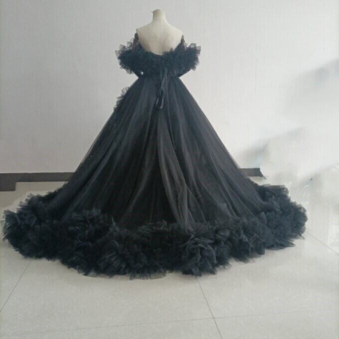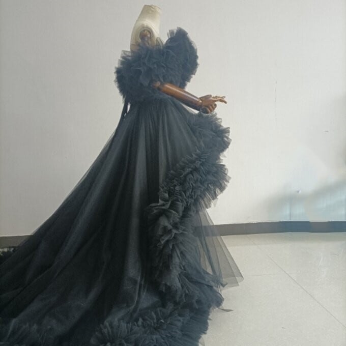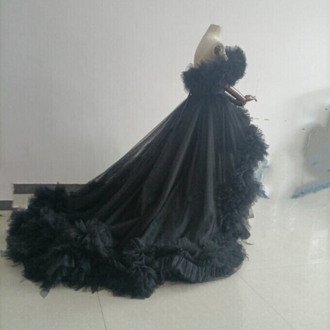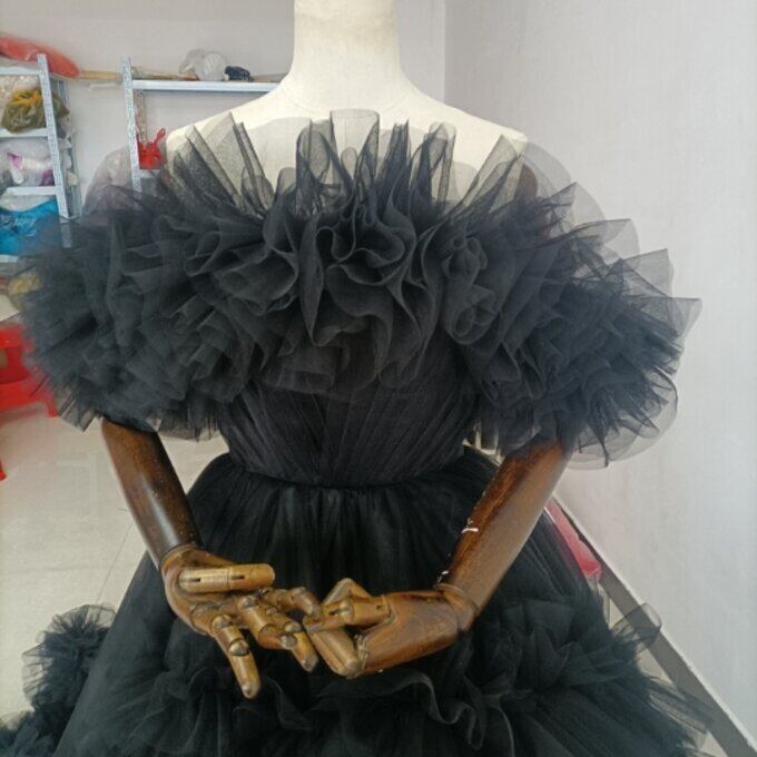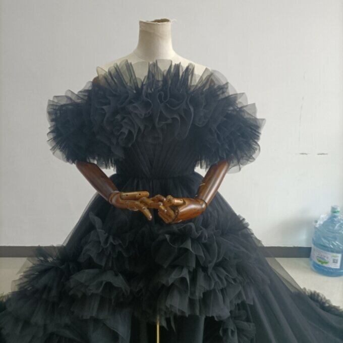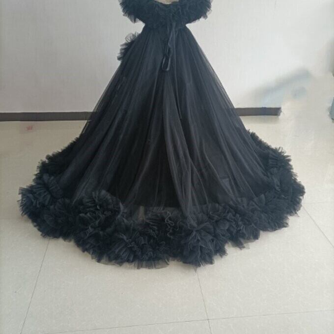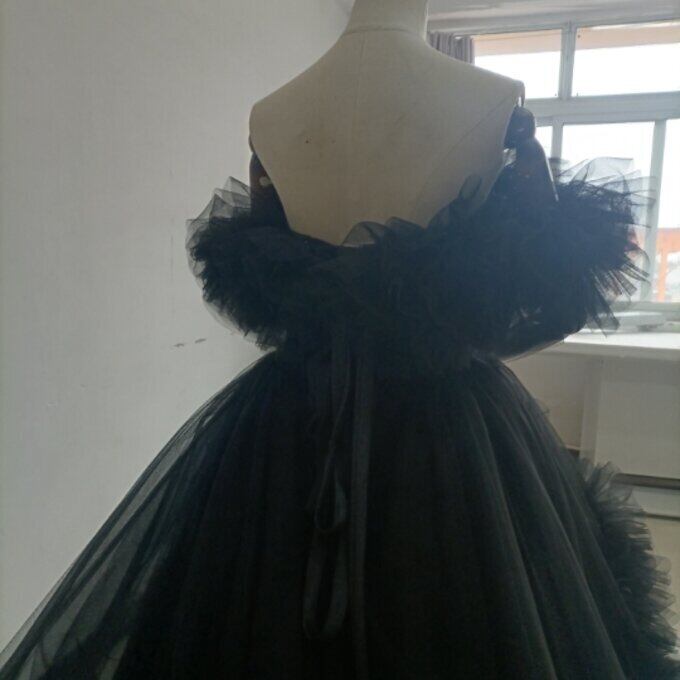 豪華! 黒 ドレス 華やかなトレーン フレアスカート クラシカル 音楽会 2次会 披露宴