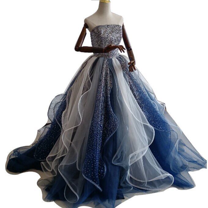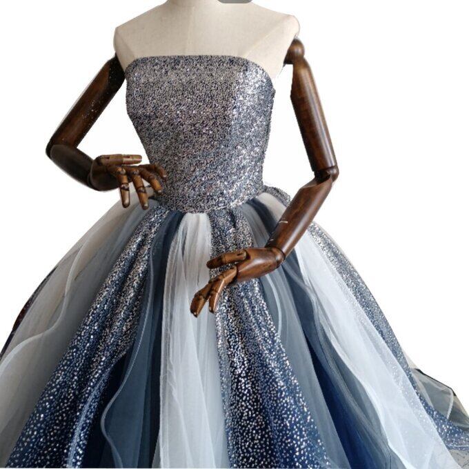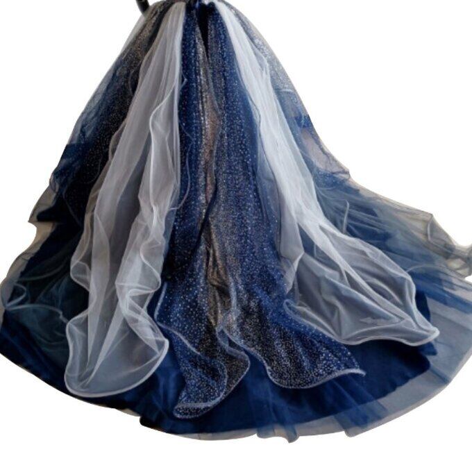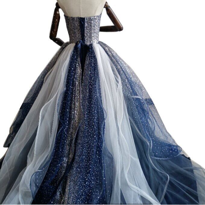 カラードレス キラキラチュー アシメドレス 青 編み上げ 可愛い 花嫁 結婚式/披露宴 プリンセスライン ベアトップ
