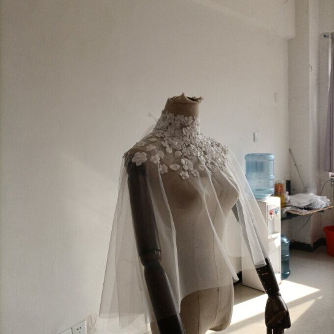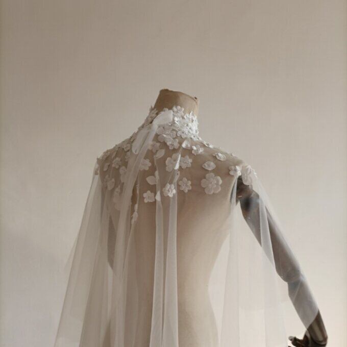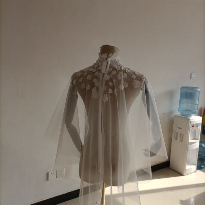 送料無料!エレガント トップス ケープ風ボレロ ウエディングドレス 咲き誇る透け花レース