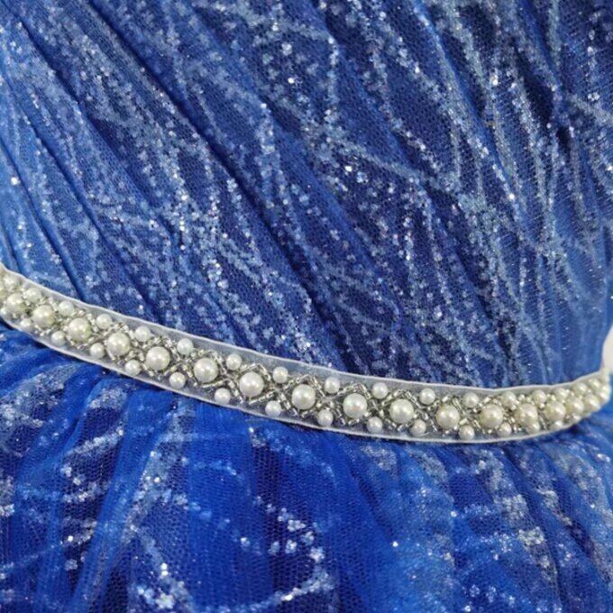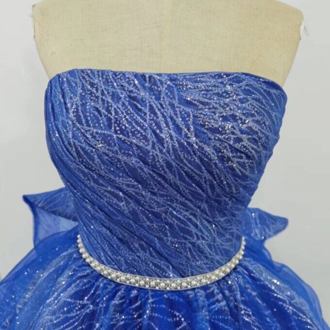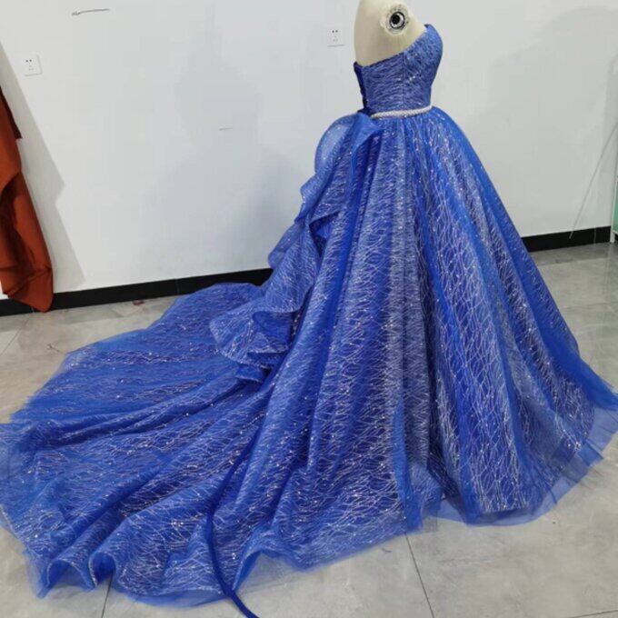豪華!青 カラードレス Aライン 華やかなトレーン ベアトップ ノースリーブ 拳式/花嫁