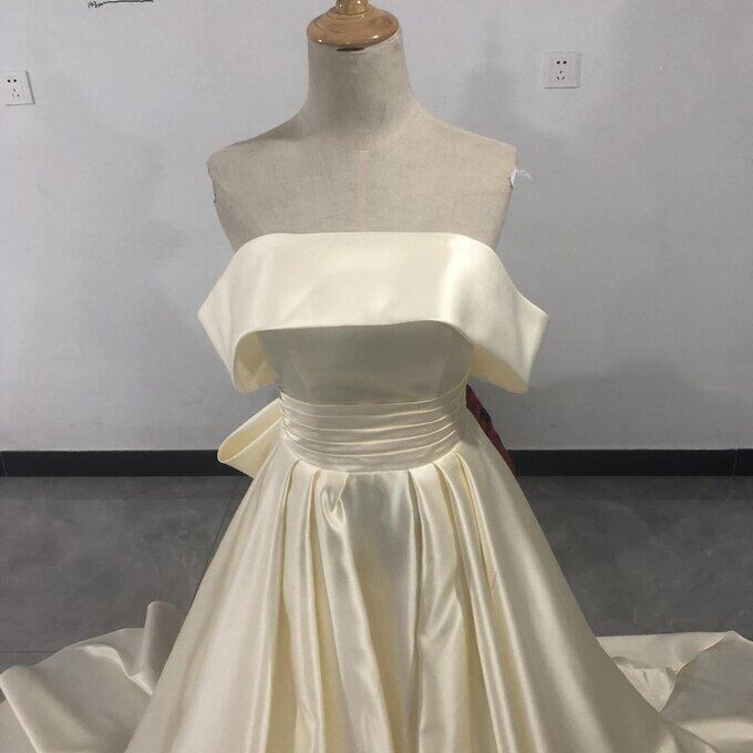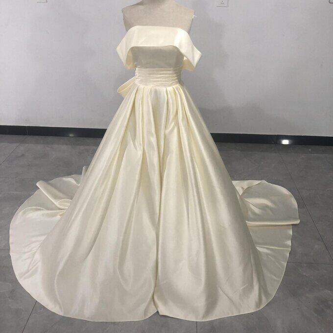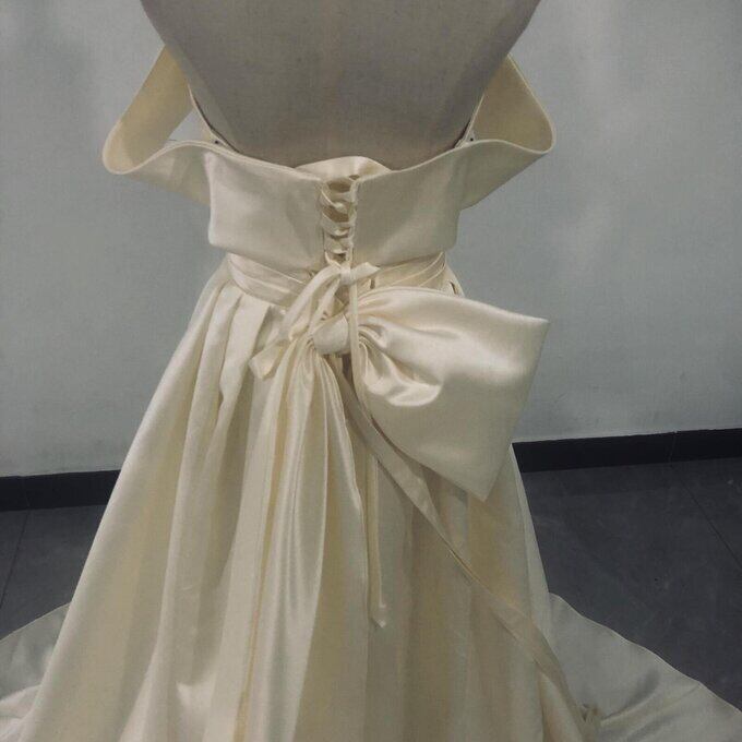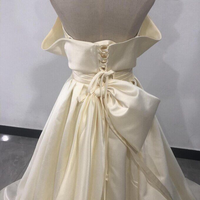 高品質! パーティードレス ベアトップ 可愛い 光沢サテン 花嫁 绮丽な リボン 編み上げ 二次会 拳式
