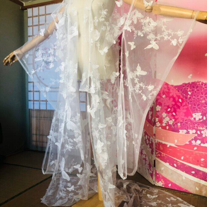 オーガンジー打掛 着物 オーバードレス レース羽織 ウエディングドレス お色直し 日常可能 白 3D立体レース刺繍