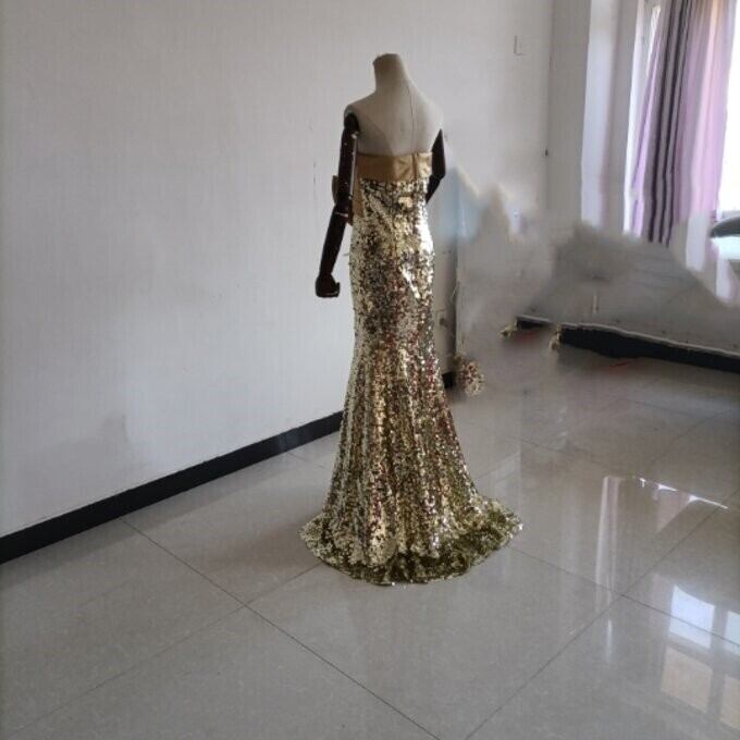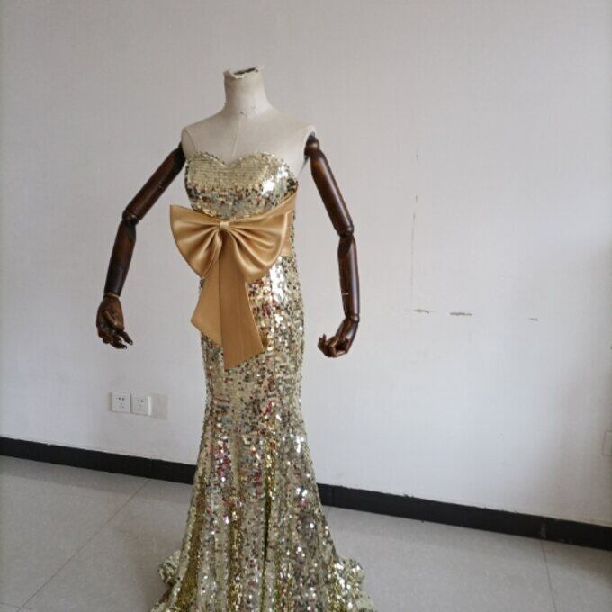 高品質! イブニングドレス ゴールド マーメイドライン ロング ベアトップ 優雅なシルエット 細見えシルエット