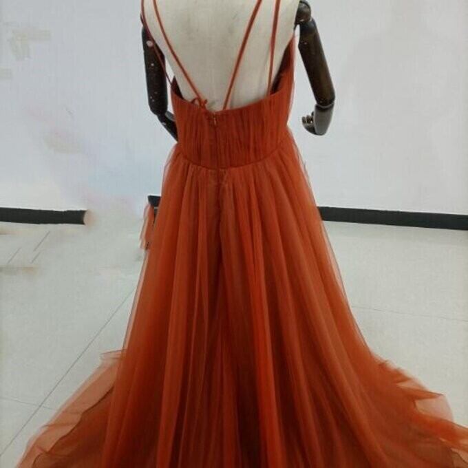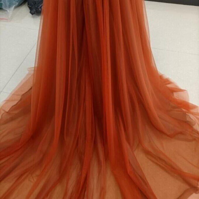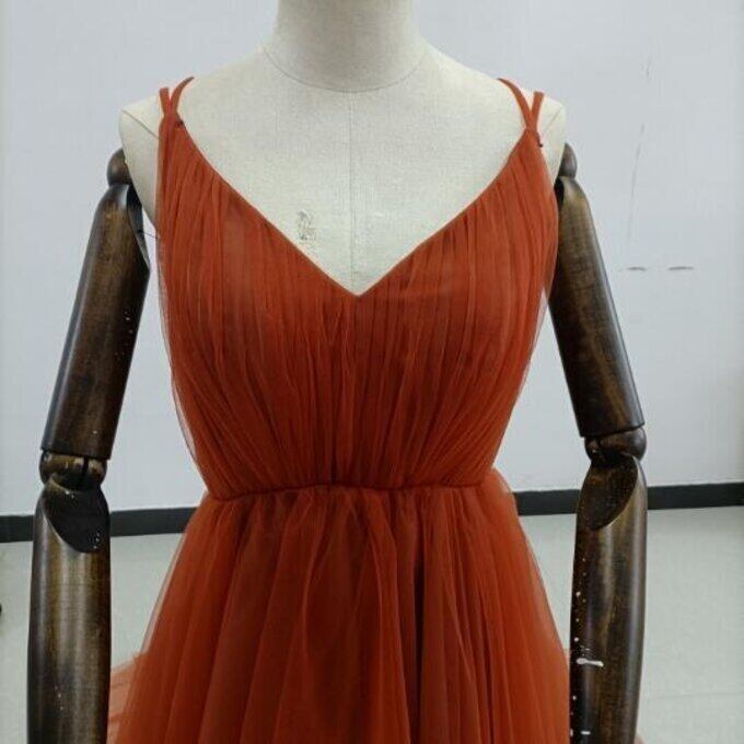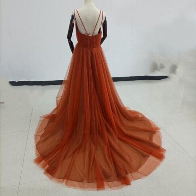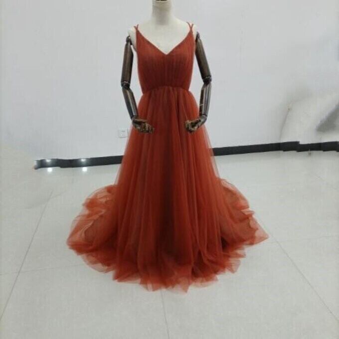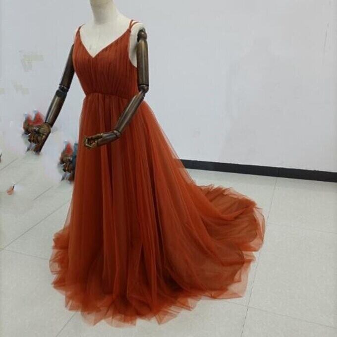 カラードレス テラコッタ色 ソフトチュール Vネック キャミソール