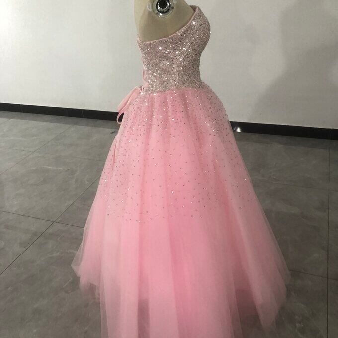 高品質!カラードレス ピンク オフショル ハンドビーディング 演奏会 披露宴 憧れのドレス