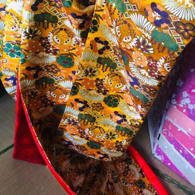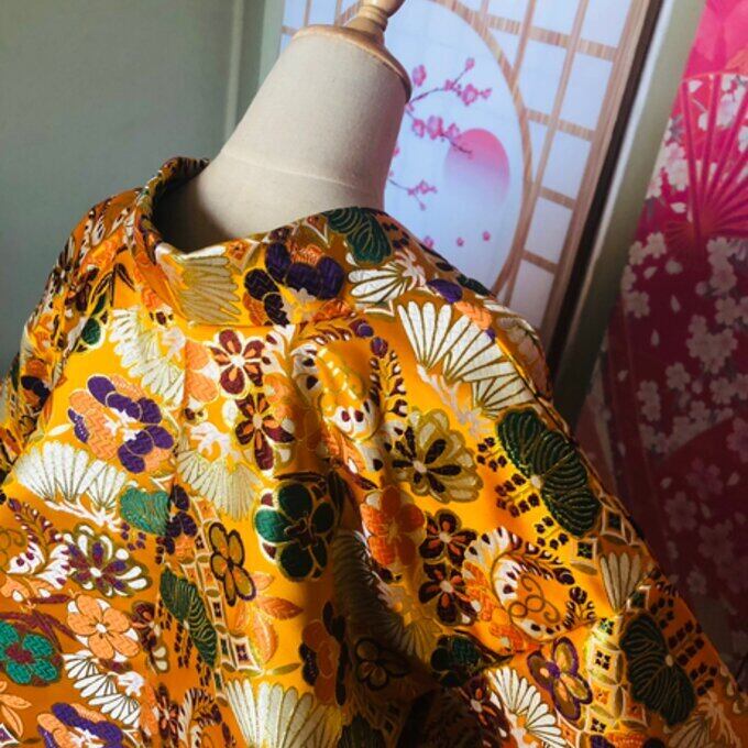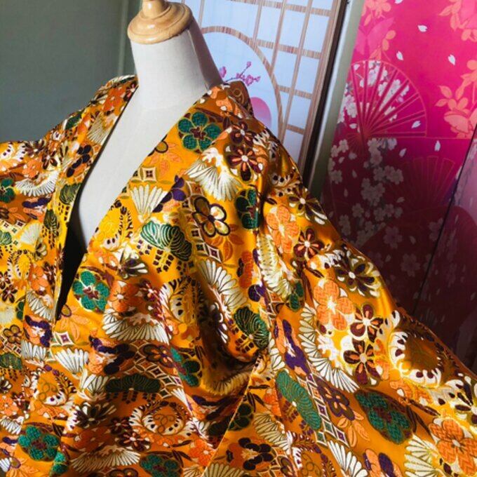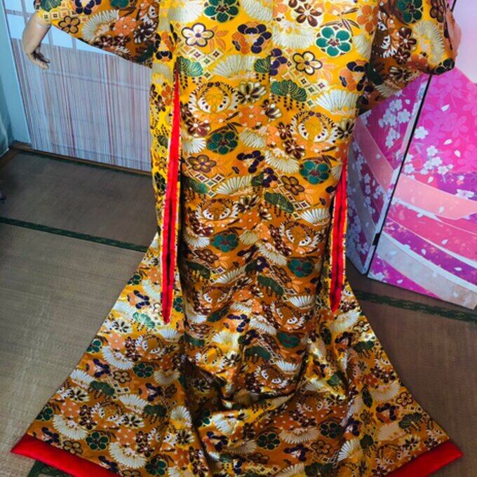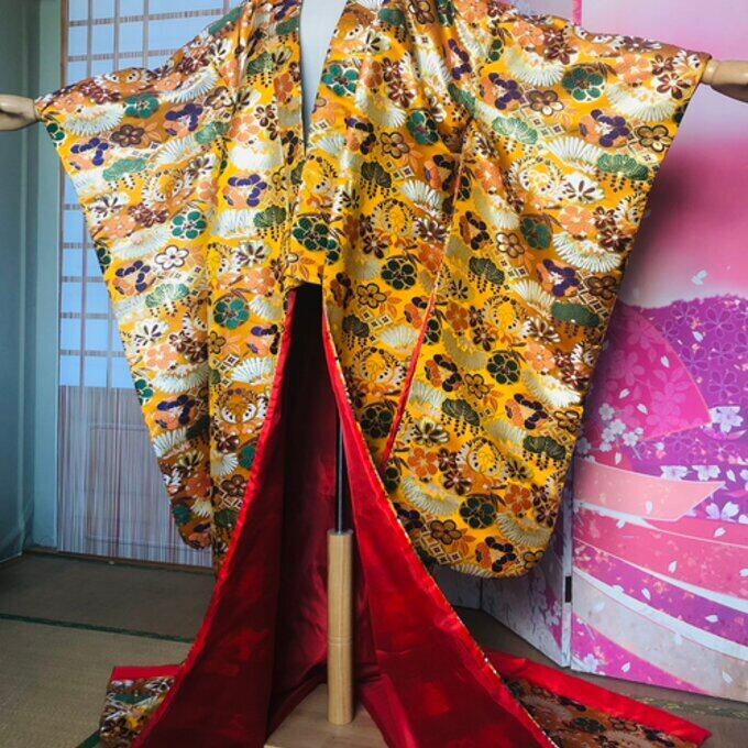 豪華! 黄色い オーガンジー打掛 着物 オーバードレス レース羽織 お色直し 日常可能 精緻な刺繍