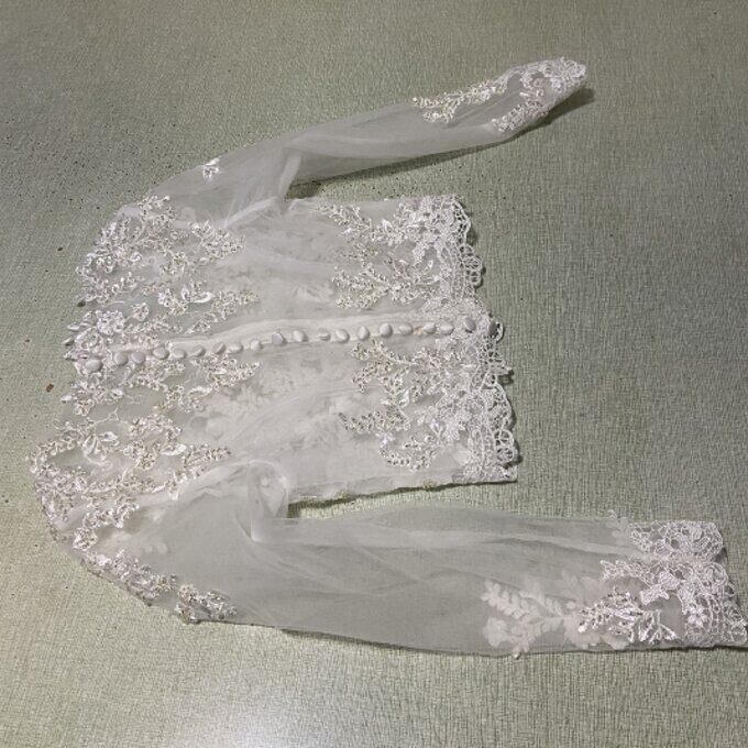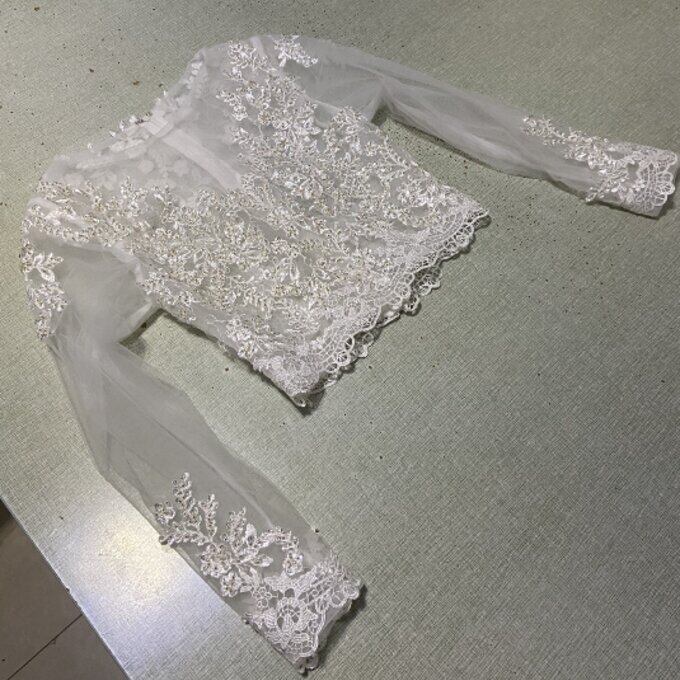 エレガント ホワイト 長袖 ウエディングドレス用ボレロ トップス 上品レース オーダーメイド可能
