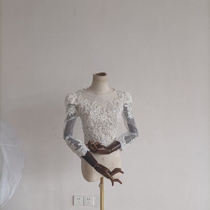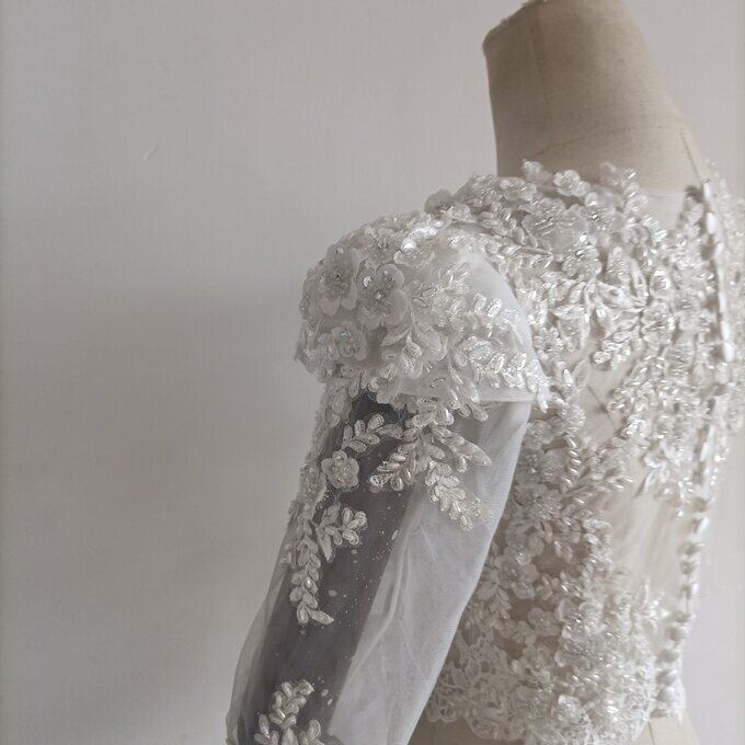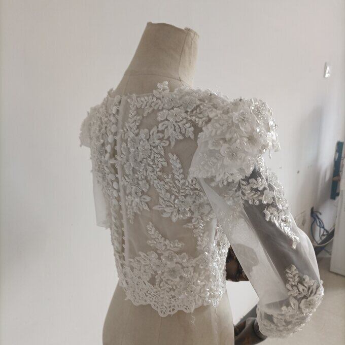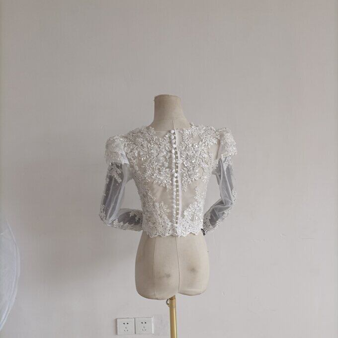 エレガント オフホワイト ボレロ 長袖 花柄のモチーフ刺繍が美しく 結婚式/二次会