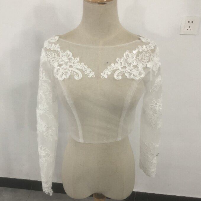 大人気上昇ウエディングドレス 可憐な花刺繍のトップス ボレロ オフホワイト クルーネック 長袖