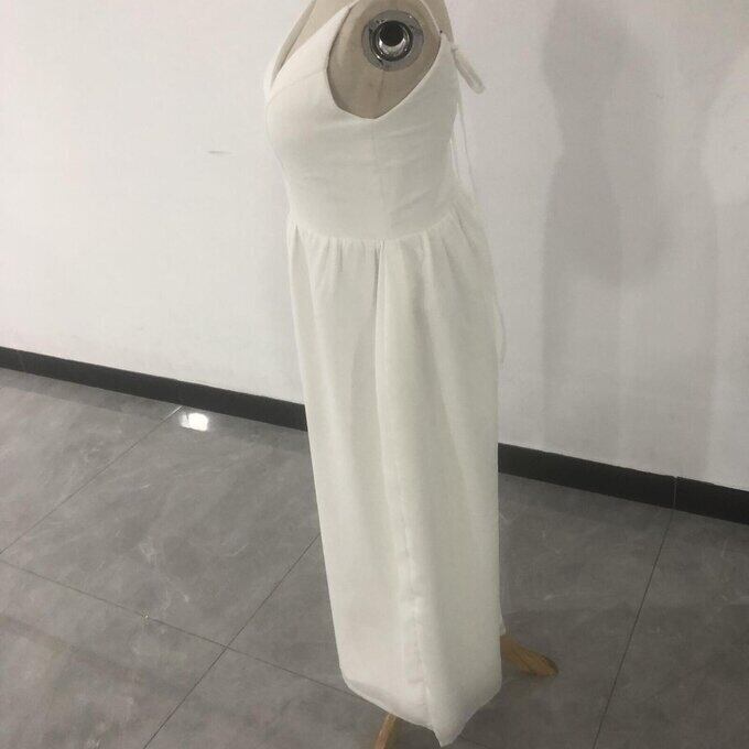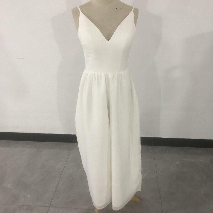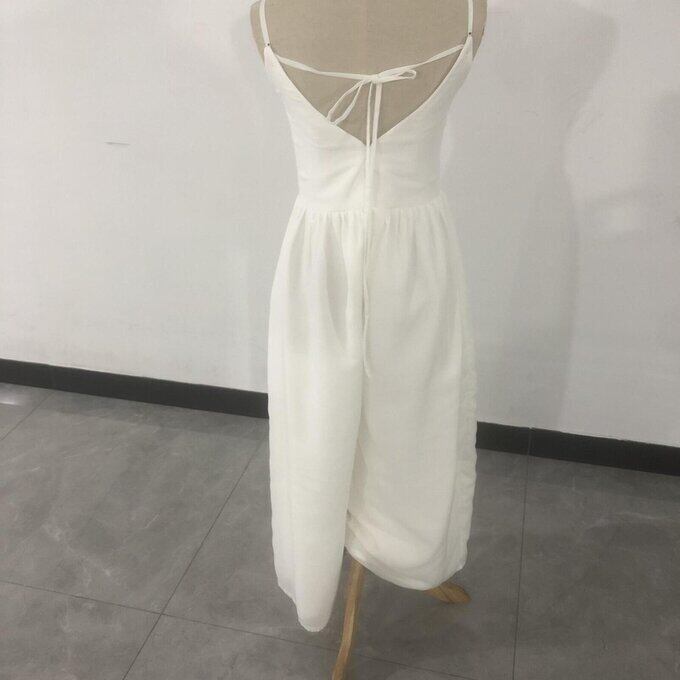 上品!オフホワイト オールインワン Vネック 背中見せ ノースリーブ 音楽会/拳式