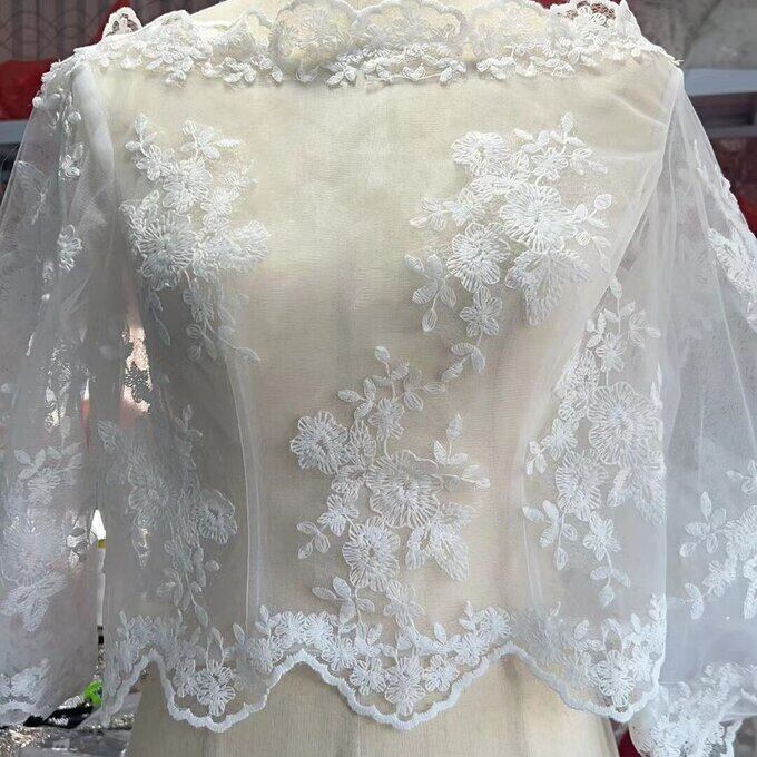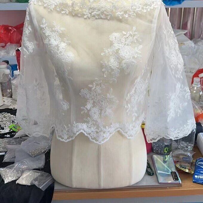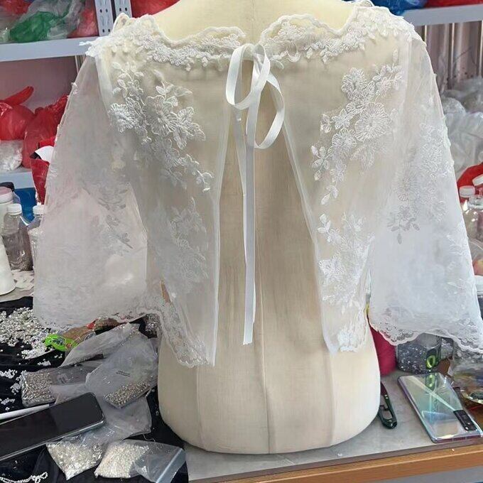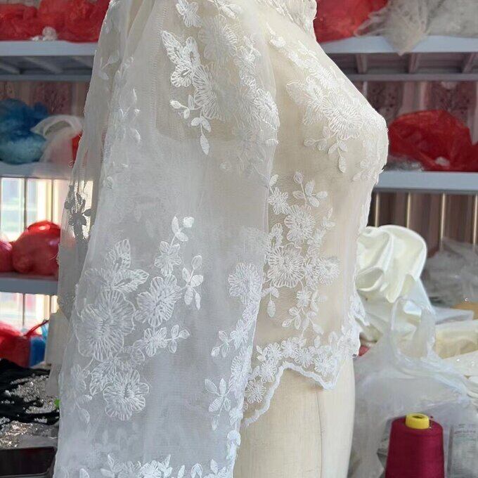 エレガント オフホワイト ボレロ 七分袖丈 花柄のモチーフ刺繍が美しく 結婚式/二次会
