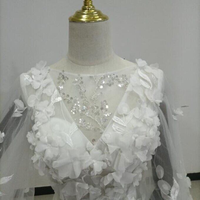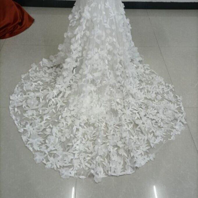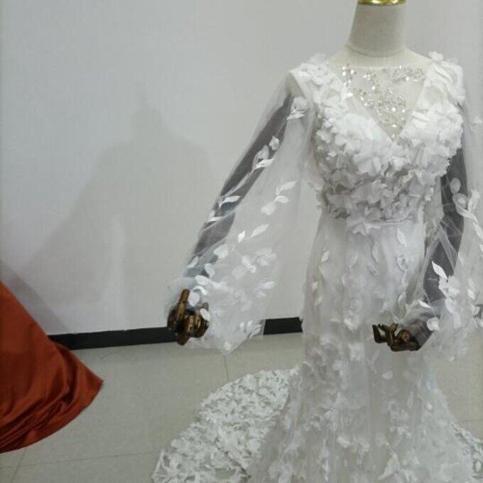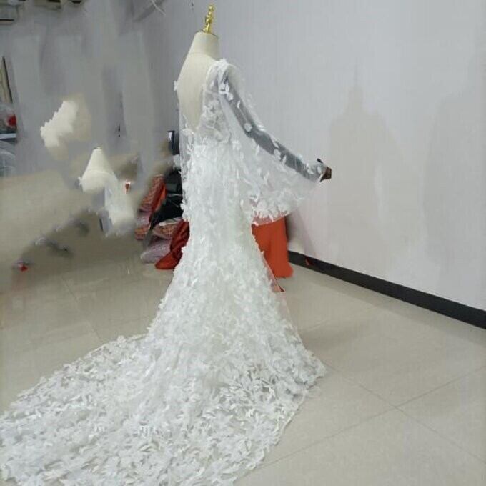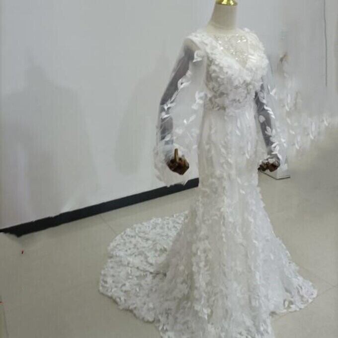 豪華!憧れのドレス オフホワイト ドレス 長袖 背中見せ 華やかなトレーン 花嫁/披露宴/二次会