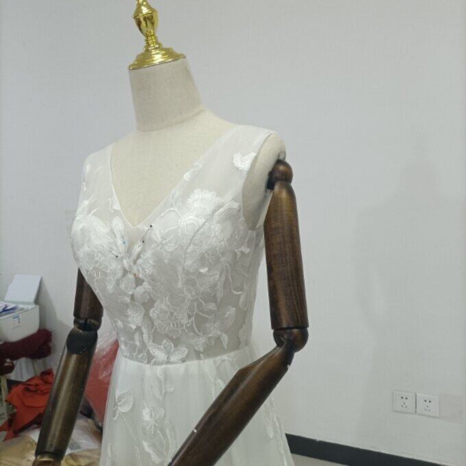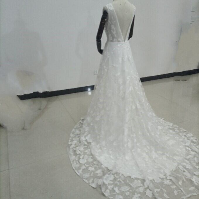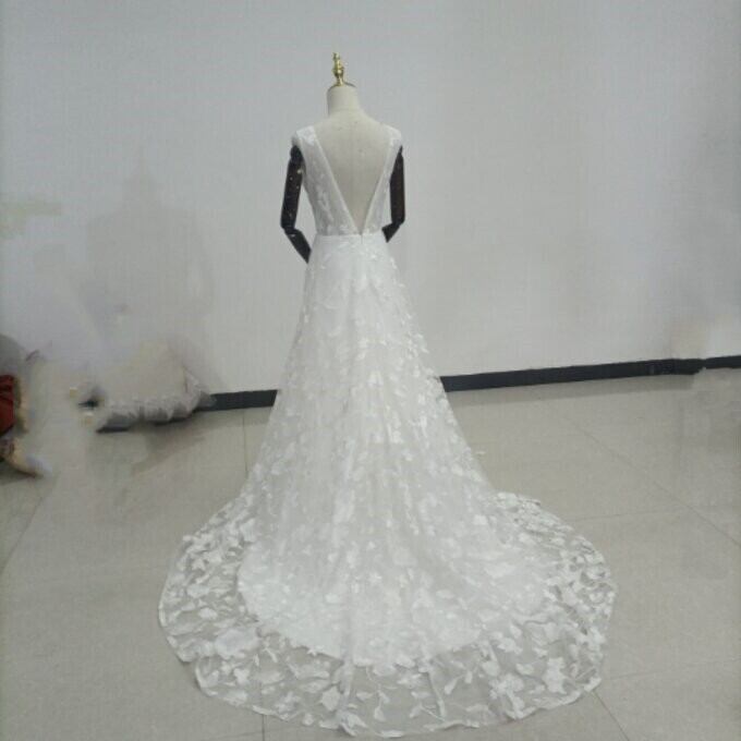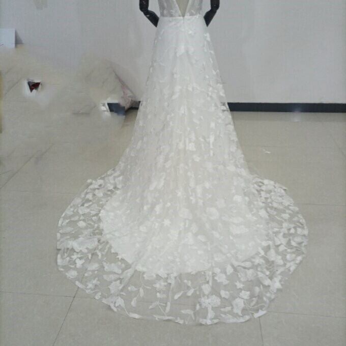 上品!オフホワイト Vネックドレス 総レース クラシカル 憧れのドレス 華やかなトレーン 結婚式/披露宴/二次会