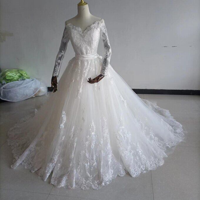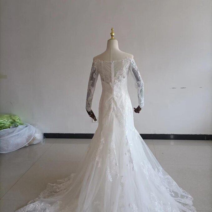 2waysウエディングドレス オフショル 取り外しオーバースカート付き マーメイドライン