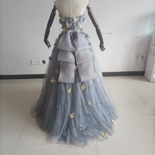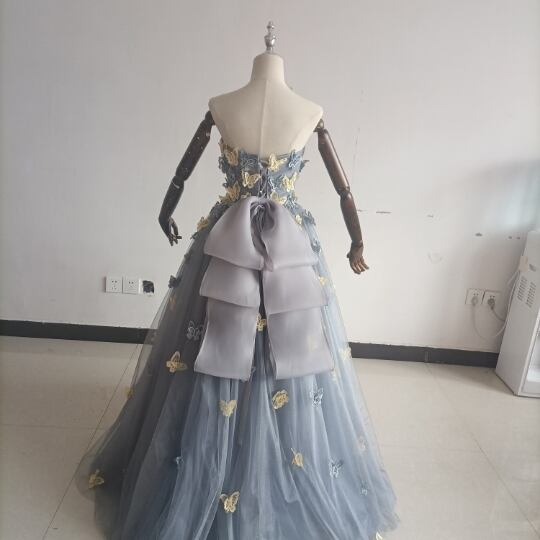 2色ミックス カラードレス 輝きな光彩を放つ 3D立体なリボン ビジュー プリンセスラインノ演奏会/音楽会