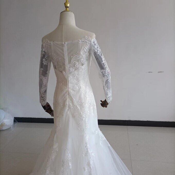 ウエディングドレス オフショル 取り外しオーバースカート付き マーメイドライン