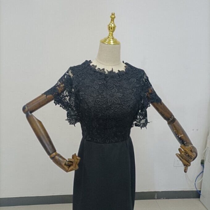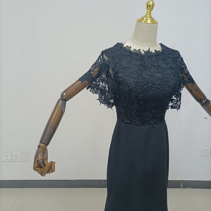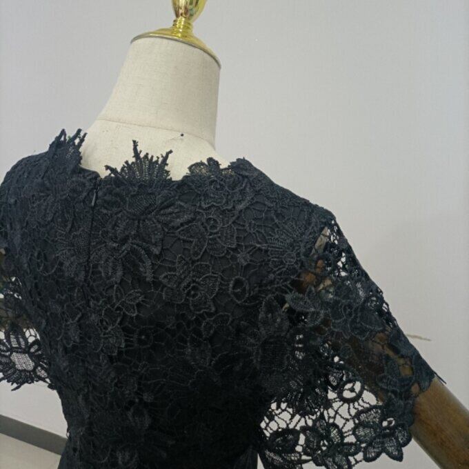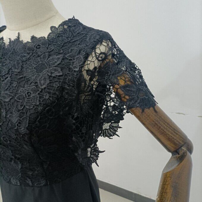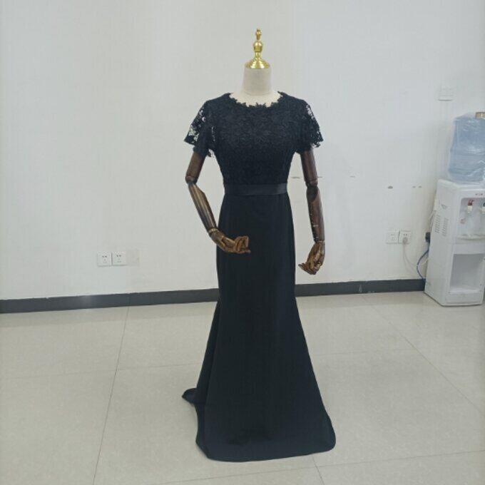 高品質!黒 姫袖 パーティードレス マーメイドライン エレガントレース 細見えシルエット 謝恩会 二次会